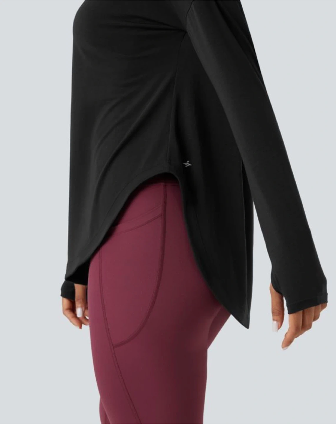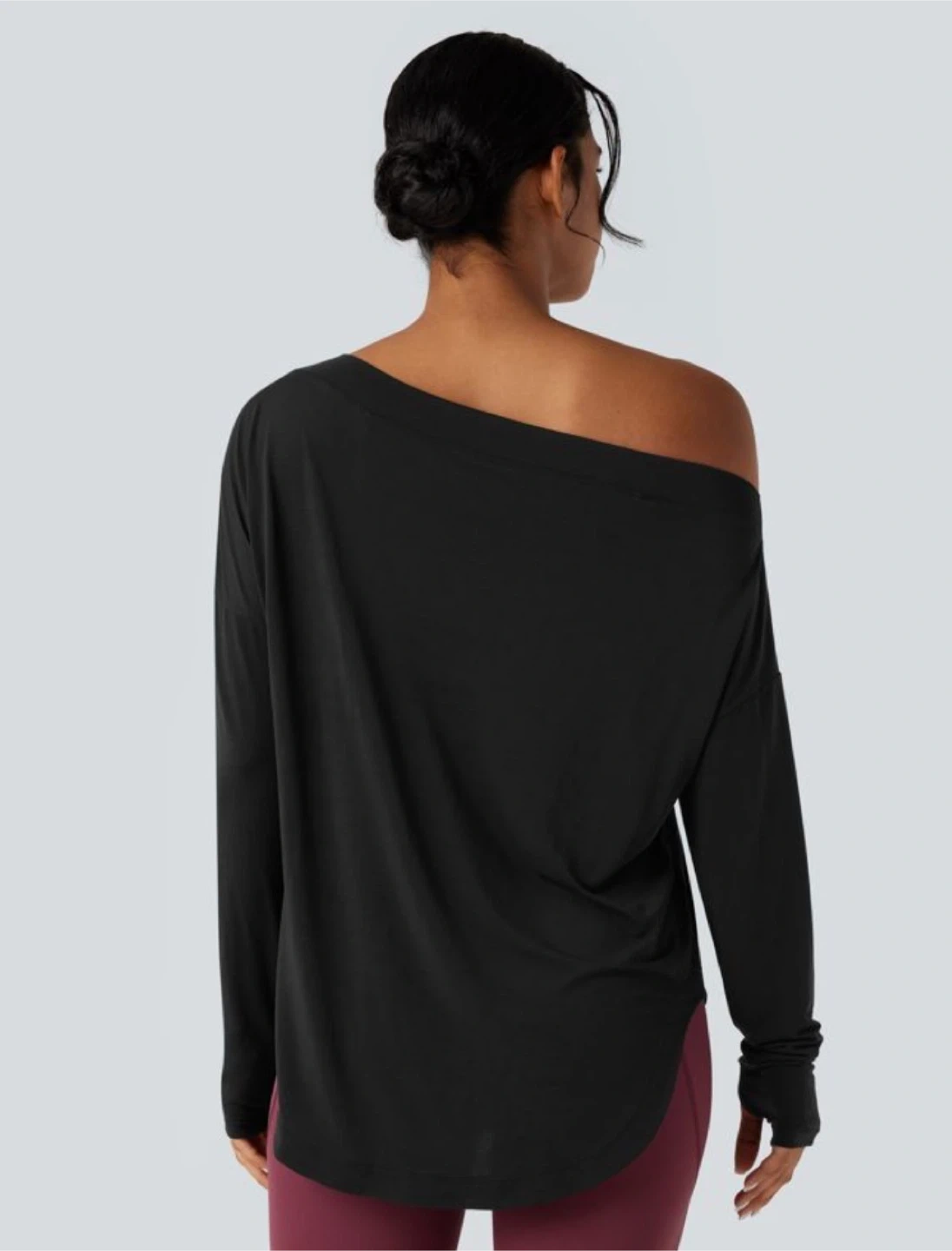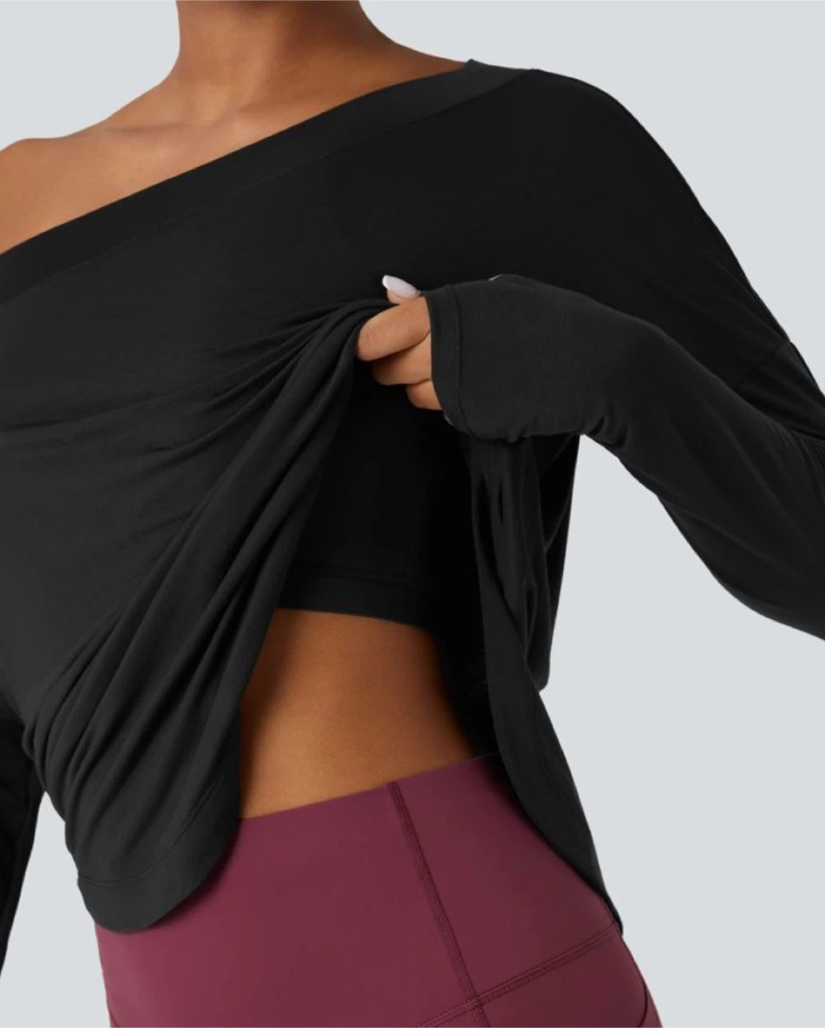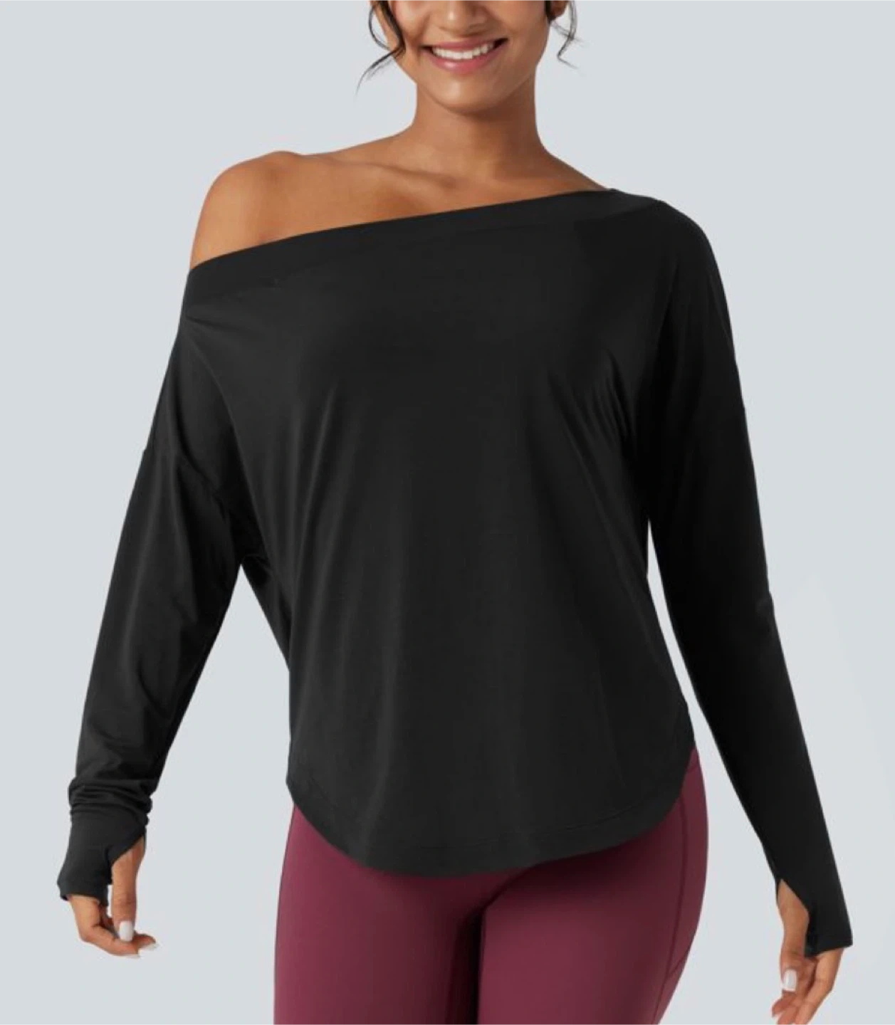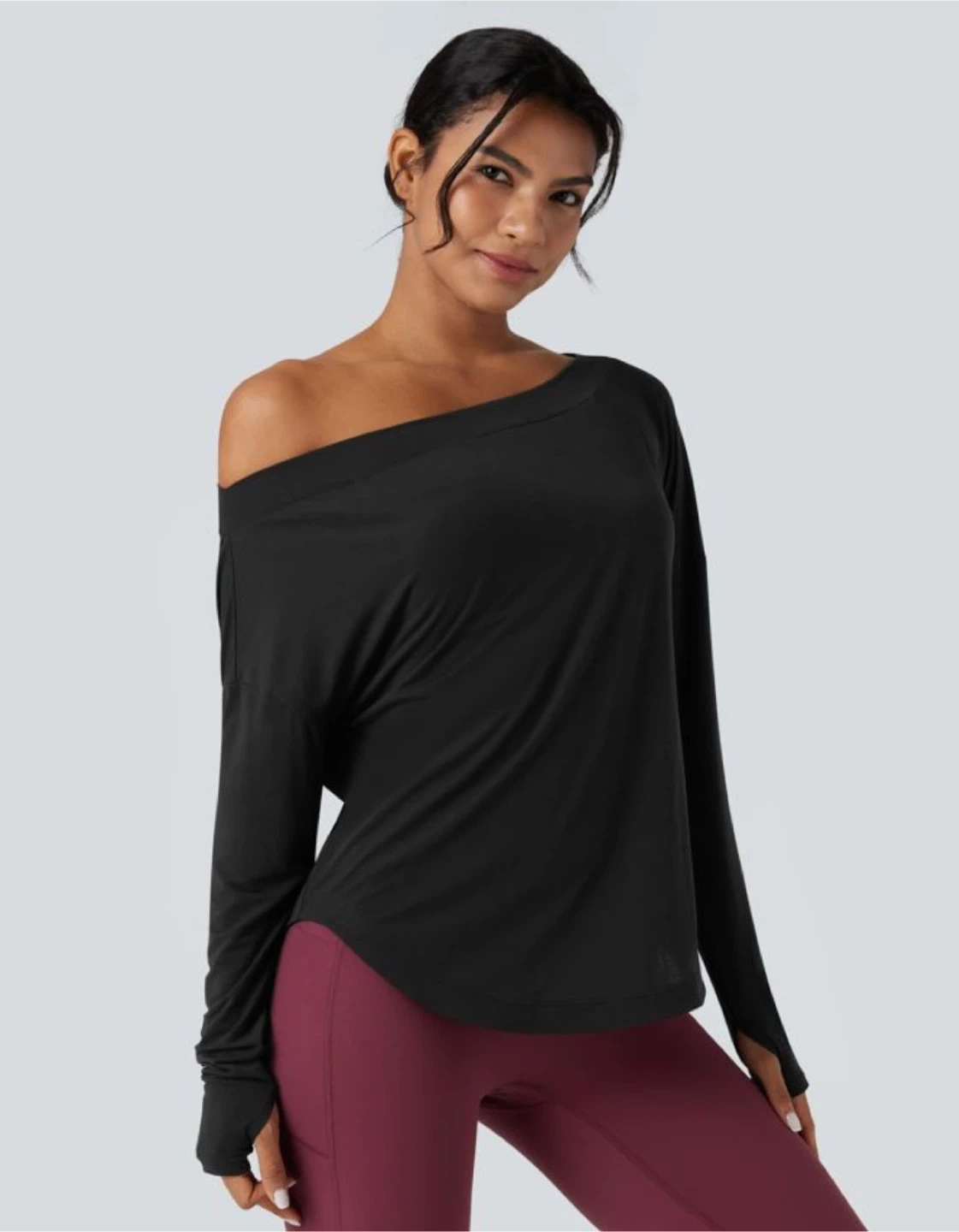 🧡 NWT HALARA Black long-sleeve off-the-shoulder yoga top