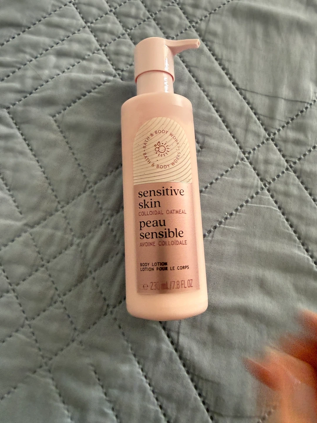 This is a Bath & Body Works body lotion formulated for sensitive skin. It contains colloidal oatmeal. The bottle is 230ml or 7.8 fl oz. It's great for soothing dry or irritated skin.