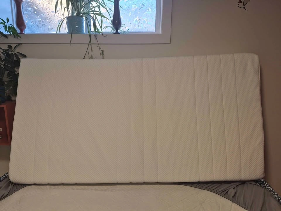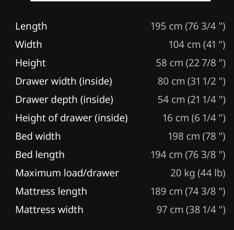 Very well-maintained Daybed Frame with mattress. Selling because of moving. Color is white. Size shown in pictures. Includes bed frame and 2 twin mattresses. No rips or stains. Only used a couple of times, and the mattress was always used with a protector. This bed has been in the guest room and not used much. With this Daybed, you can quickly and easily create space for overnight guests. Just pull out the bed base, and you get a double bed in no time. The large drawers have space for extra duvet, pillows, and other items you need to store.