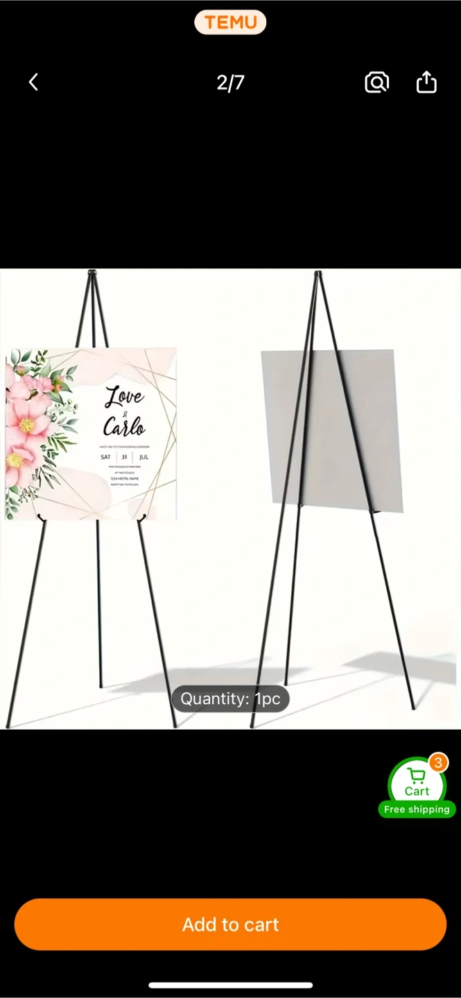 This black metal tripod easel is perfect for displaying artwork or signs. It has a maximum height of 165cm/66 inches and a width of 120cm/47 inches. It includes a carrying bag for easy transport. This easel is suitable for event displays or artists needing a stable stand.
