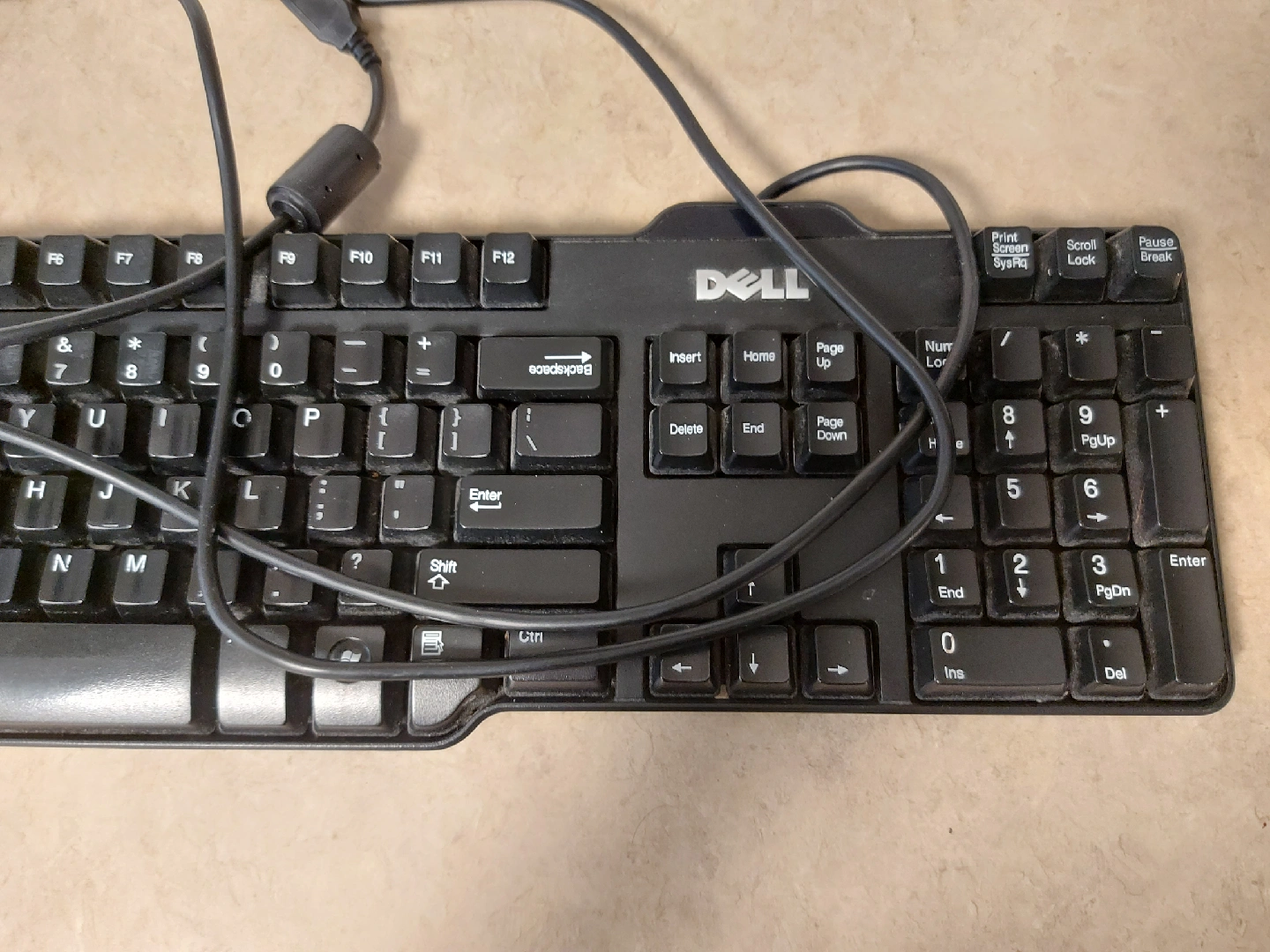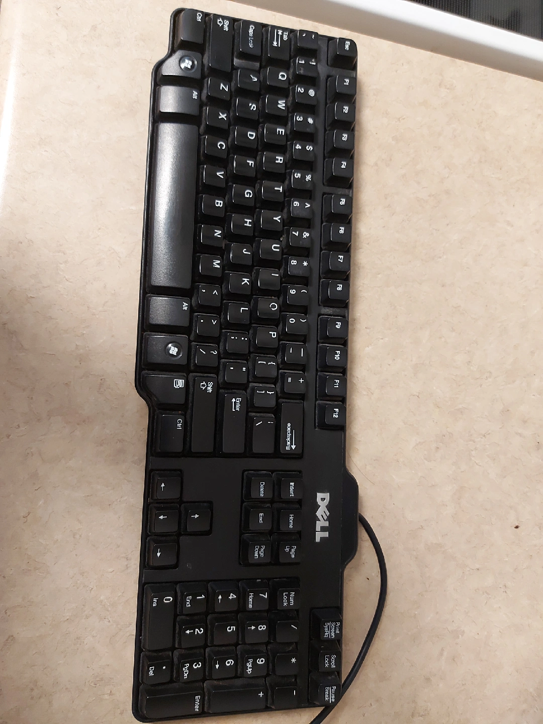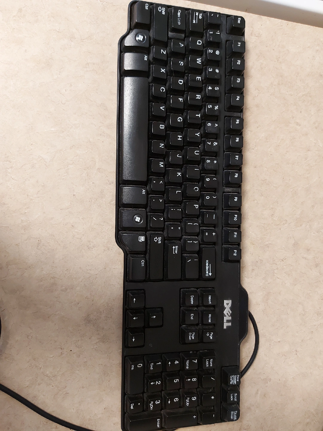 Selling a used Dell keyboard in black. It's a standard keyboard layout and is in working condition. Perfect for a spare or replacement!