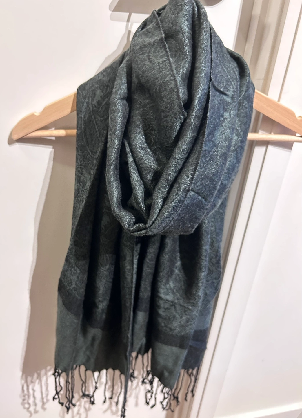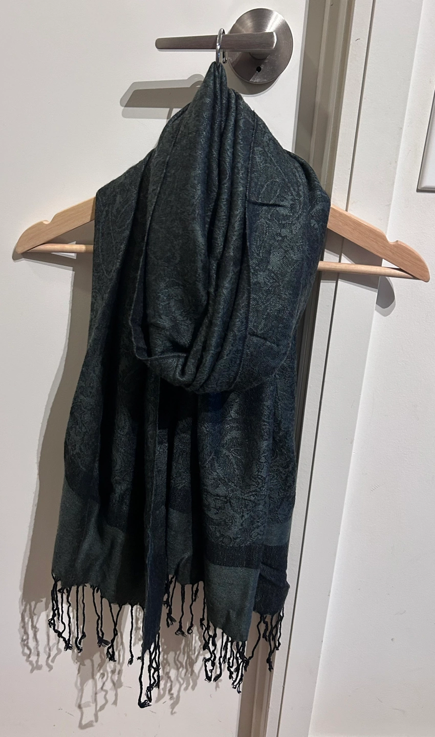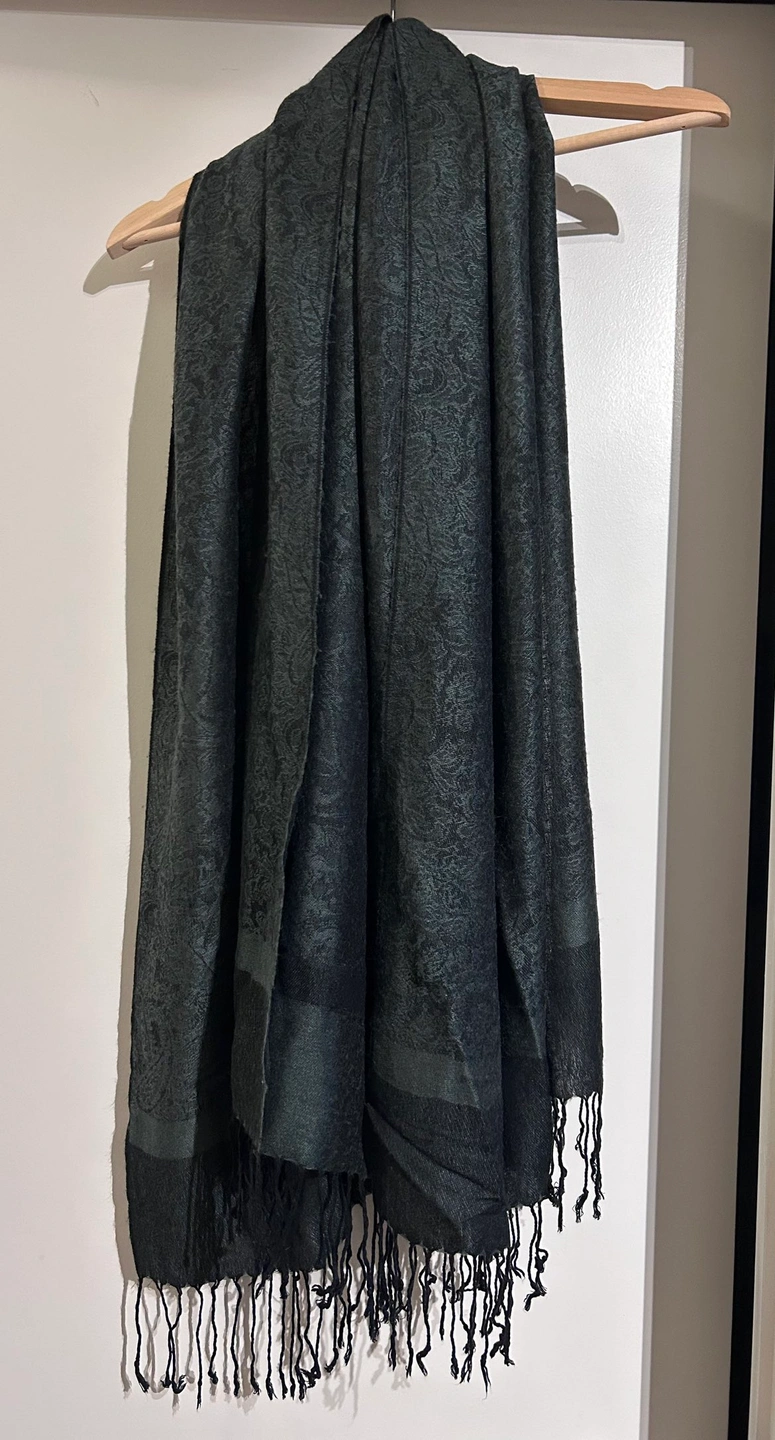 This beautiful black and dark gray paisley patterned scarf is timeless, elegant and super soft!