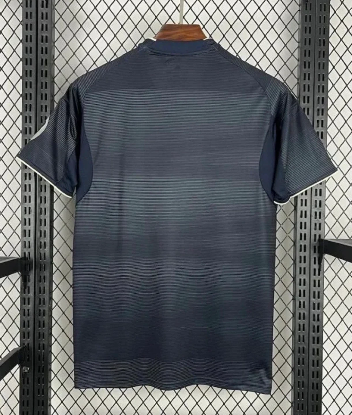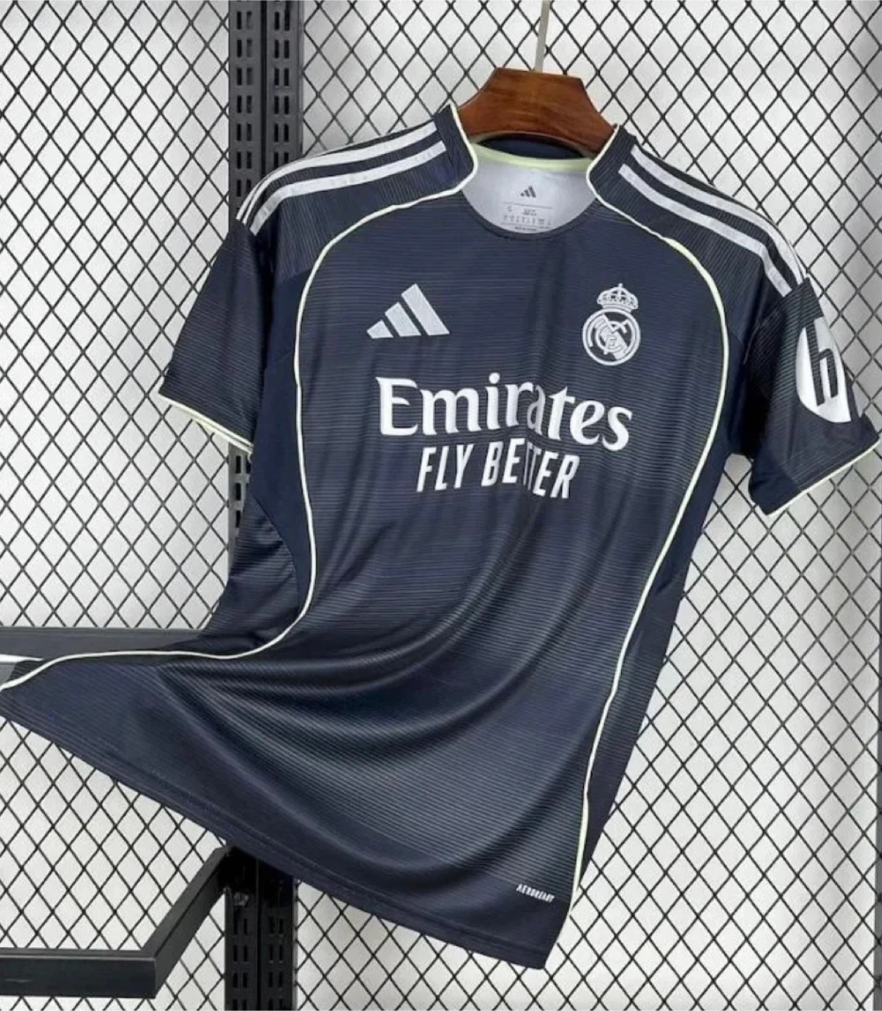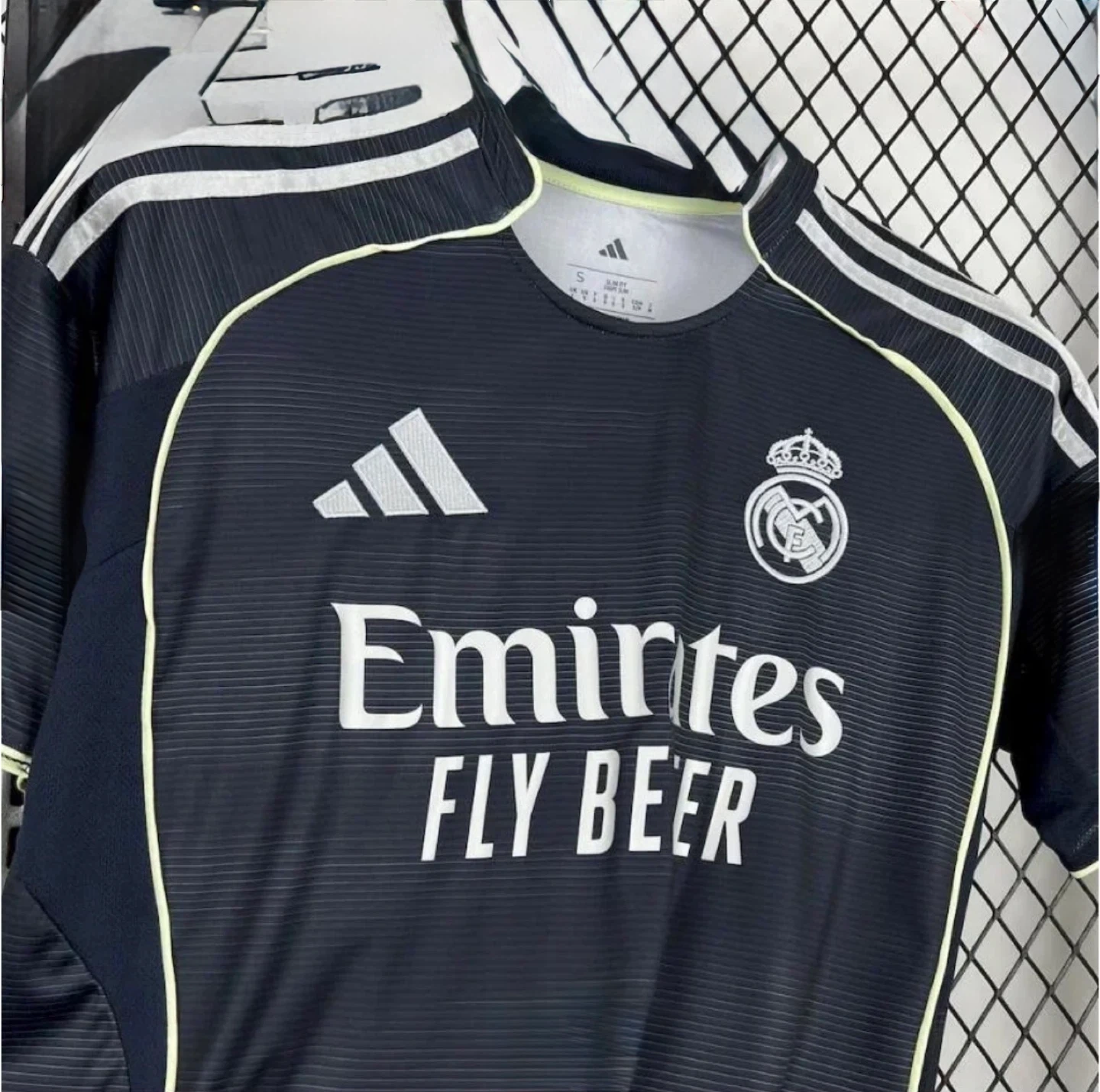 This is an Adidas Real Madrid football jersey in size small. It's black with white and light green accents. Features the Adidas logo and Real Madrid crest.