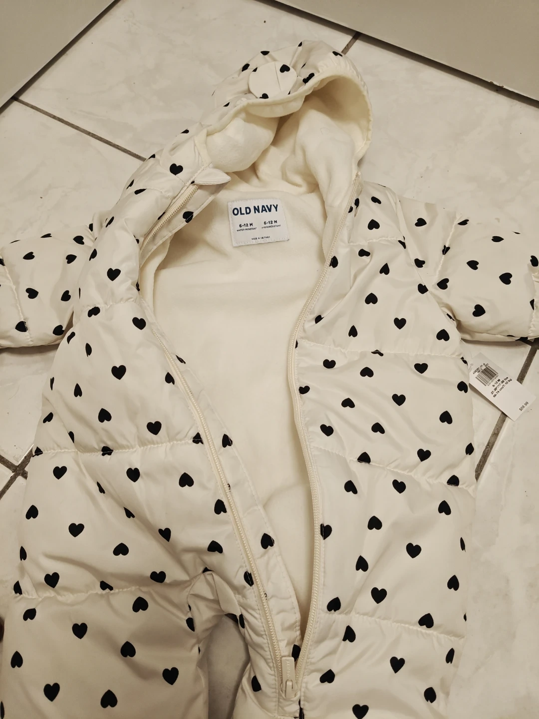 Old Navy Baby Snowsuit - White with Black Hearts (6-12 Months)