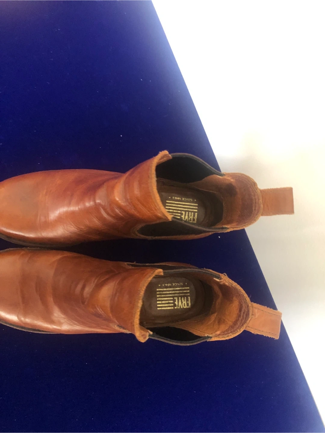 Campus Chelsea. These Frye boots are crafted from rich brown leather. They feature a classic Chelsea boot design with elastic side panels for easy wear. A stylish and durable option for everyday.