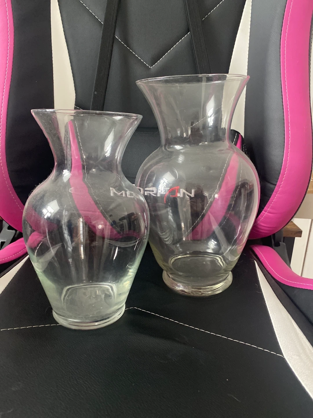 Selling a set of two clear glass vases from Morion. They're in good condition and ready to add a touch of elegance to your home! Perfect for displaying your favourite flowers or as decorative pieces on their own