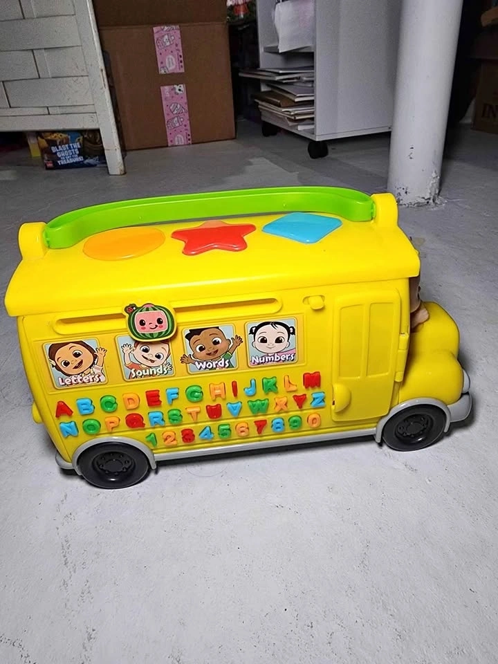 This Cocomelon Musical Learning Bus is a fun way for kids to learn. It plays songs and has interactive features. Let me know if you're interested!