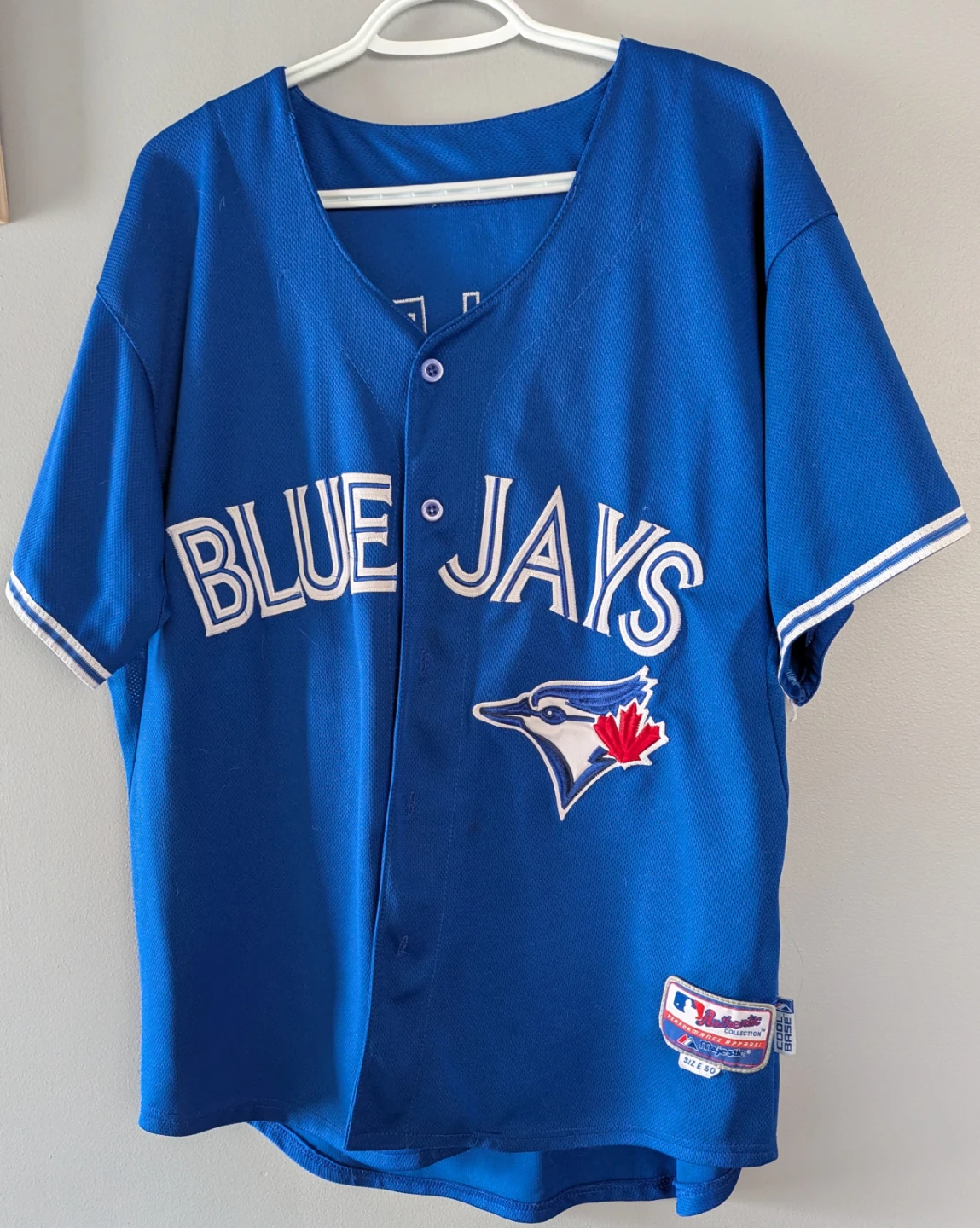 Majestic Authentic Collection baseball jersey for the Toronto Blue Jays, featuring player Donaldson and number 20. It's a size 50 with Cool Base technology. This is a great jersey for any baseball fan!