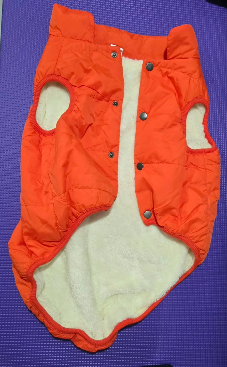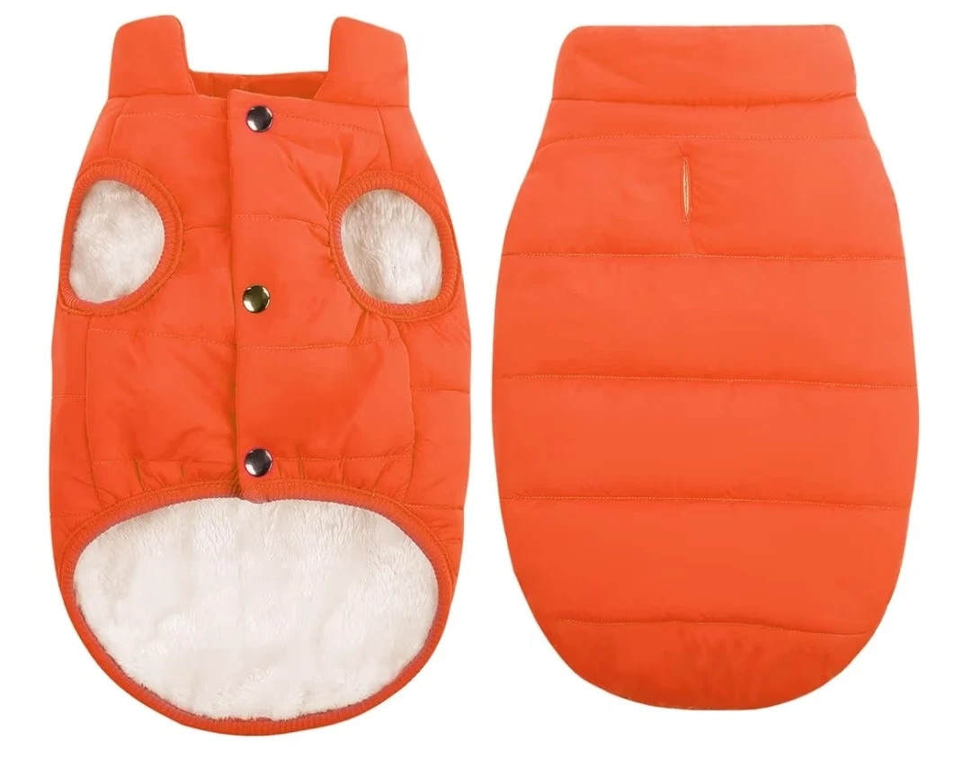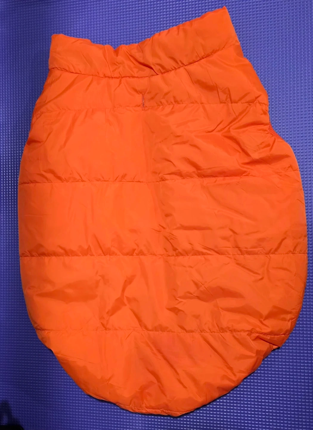 214Keep your furry friend warm and stylish with this orange puffer vest! It's perfect for those chilly Canadian days. The vest is lined with soft fleece for extra comfort. It features a waterproof and windproof material, making it ideal for outdoor adventures