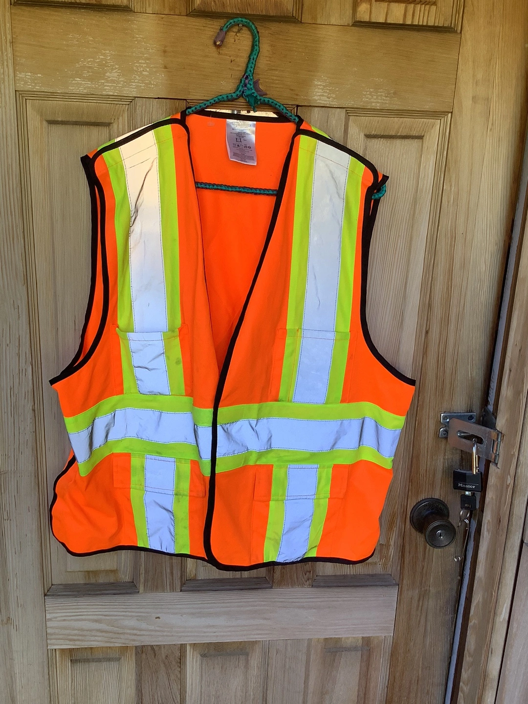 Selling an orange safety vest! It's in great condition and ready to keep you visible on the job or during outdoor activities. Size LL / 56