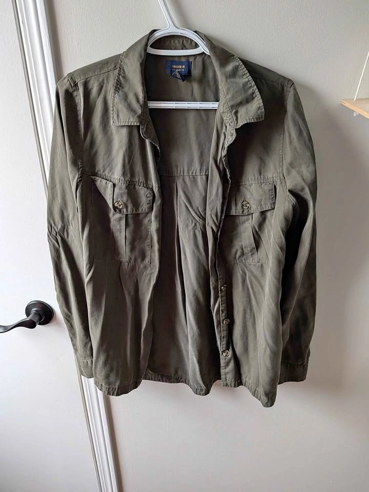 Buy & SellForever 21 Women's Olive Green ShirtForever 21 Women's Olive Green Shirt$20Size large. Final sale. No exchange, no returns.WHERE TO MEETCheck LocationView MapSELLERverifiedMiss AFiddlesticks750 reviews0 chats·0 favorites·0 viewsSEND CHAT TO SELLERHi Miss A! I’m interested in your listing.Hi Miss A! I’m interested in your listing.Get the Karrot app to chatSign In to chat