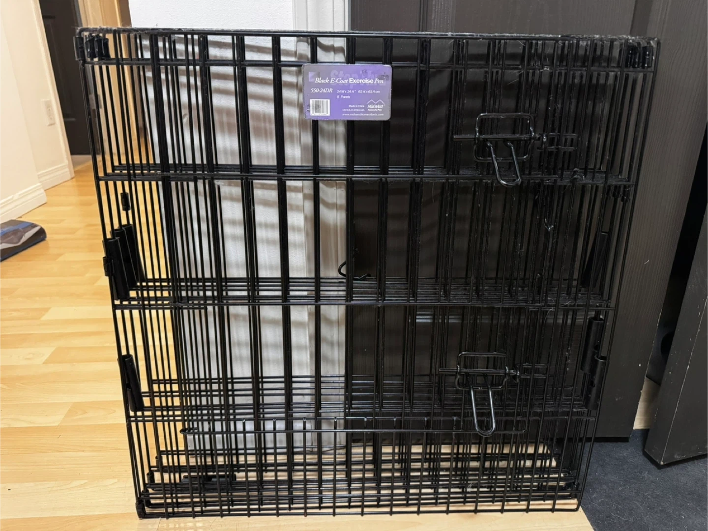 This is a MidWest Homes for Pets Black E-Coat Exercise Pen, designed for small to medium pets. It's a versatile enclosure for training or playtime. The pen offers ample space for pets to move around safely.