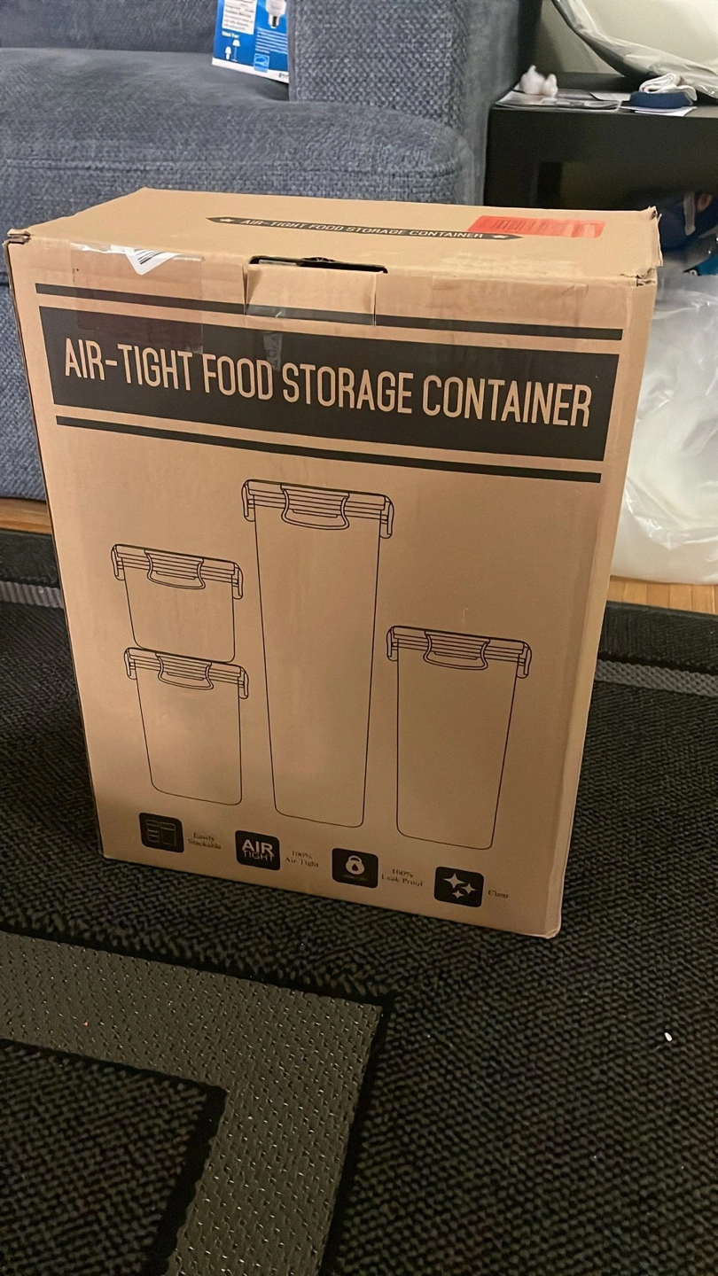 Selling a set of air-tight food storage containers! These are great for keeping your flour, sugar, rice, nuts, beans, cereal, pet food, or anything else you may need to store fresh. Model number is GZ07