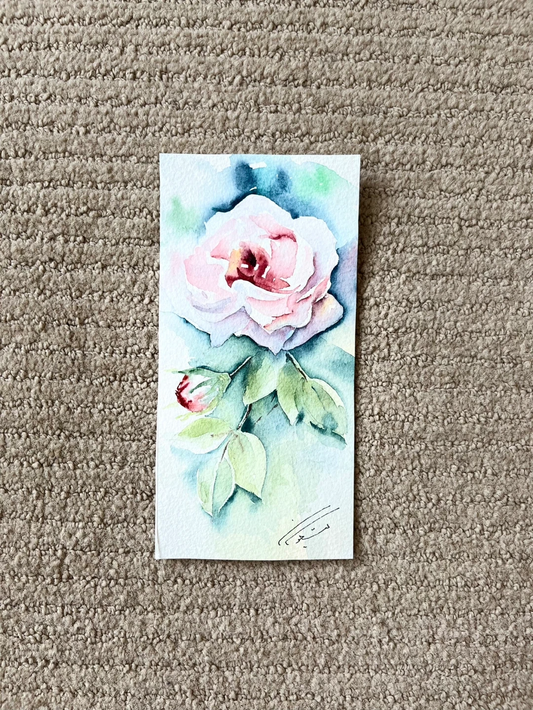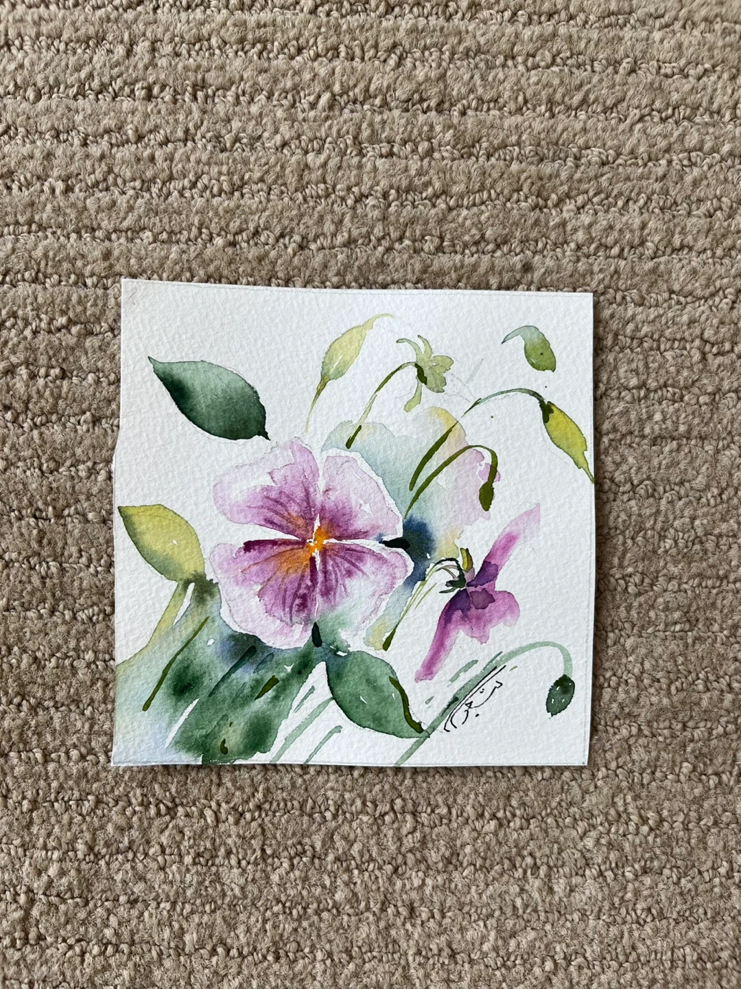 65Here's a beautiful original watercolour painting of some flowers! It would look great in any room, adding a touch of nature and colour to your space. Perfect for adding a bit of cheer to your home! Painting dimensions are between 10 to 15 cms Painter: Katy Razzaghi