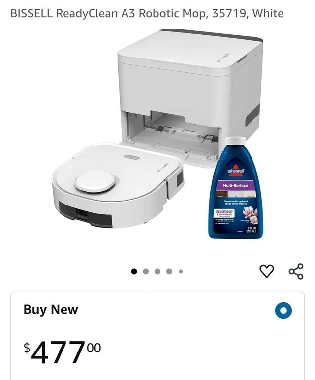 I am selling a brand new Bissell ReadyClean A3 Robotic Mop, model 35719, in white, designed for efficient and hands-free floor cleaning. This automated mop navigates your home with ease, delivering spotless results. It includes a multi-surface cleaning solution to tackle various floor types. Key features include: