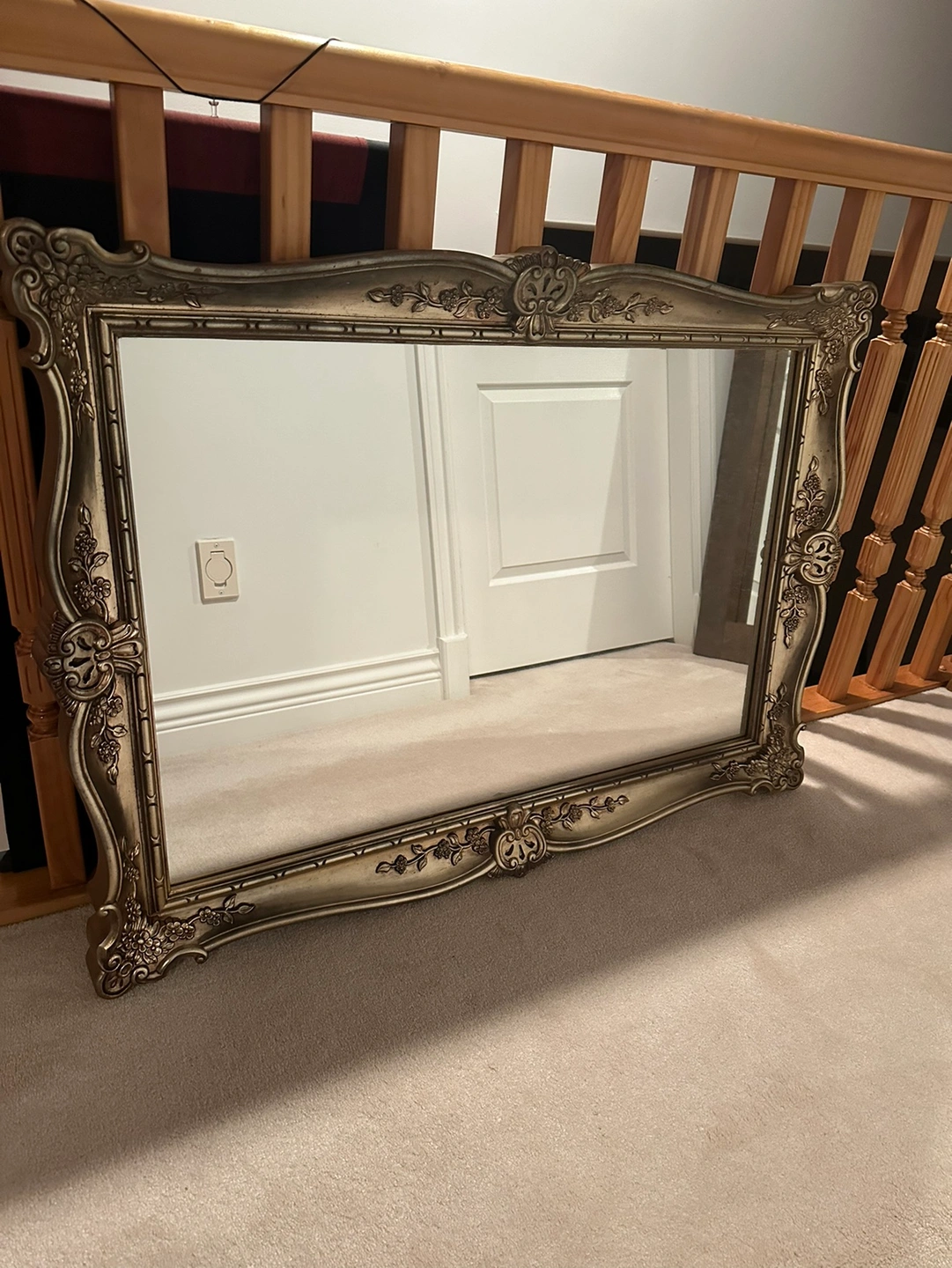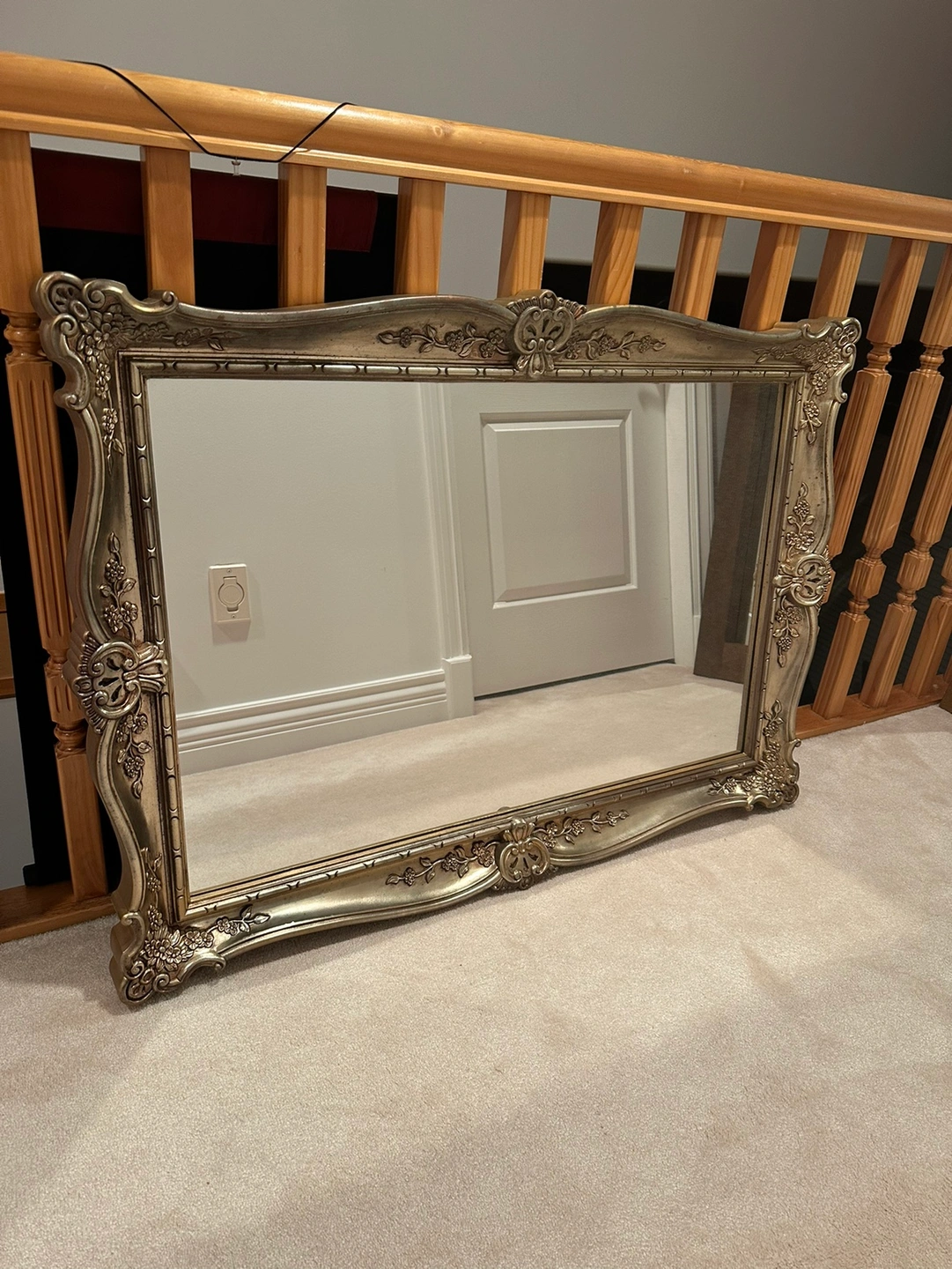 40Large ornate mirror with a antique finish. It has an intricate floral design. $80 obo