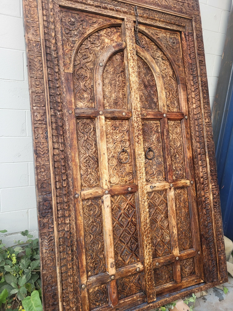 10Beautifully carved wooden door, perfect for adding a unique touch to your home! The intricate details and warm wood tones make it a real statement piece