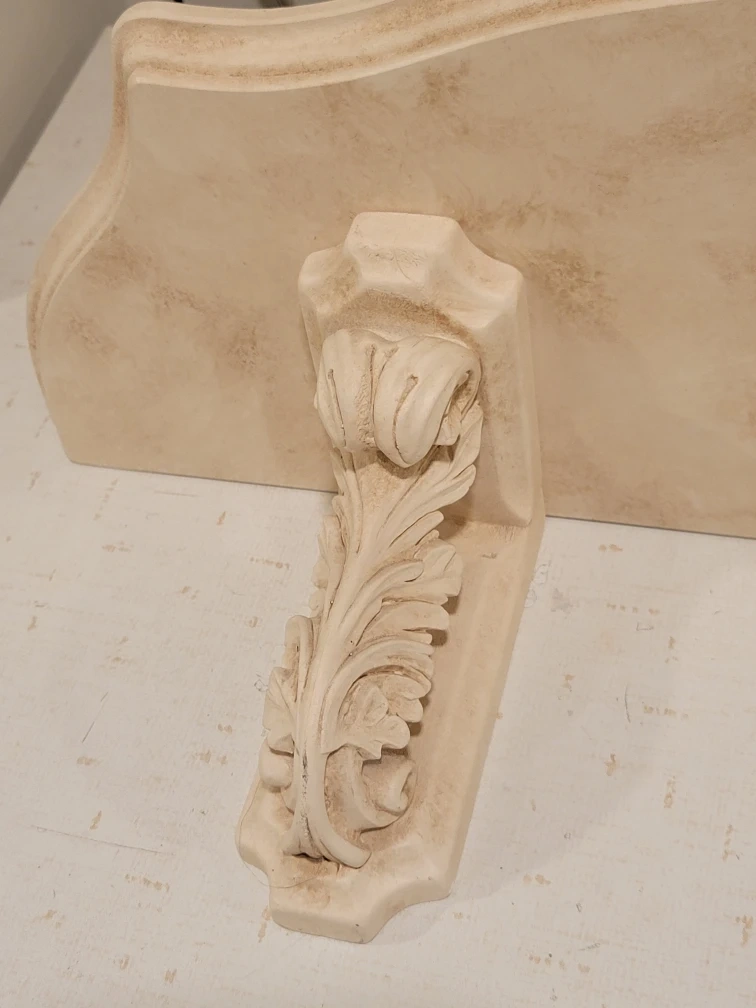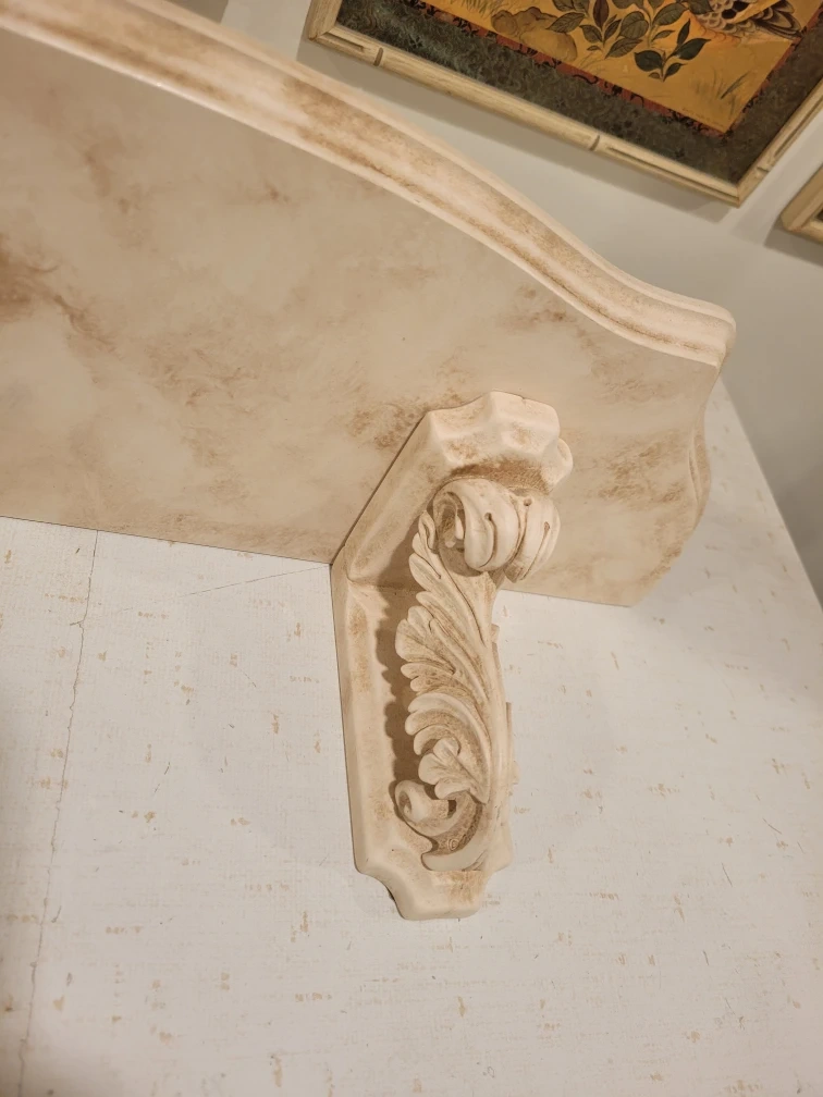 103Elevate your home decor with this stunning ornate plaster scroll wall mount shelf, this crafted lShelf features elegant scroll detailing and a timeless design. Add a touch of classic charm to any room with its unique and eye-catching presence. * Material: Plaster * * Style: Ornate, Scroll Design * Mounting: Wall Mount ☆ Manufactured 2000 2 7" long x 7"wide $99 NOTE: PICTURES in background not for sale. Fennell and Upper gage Hamilton Please see all my listings for Sale