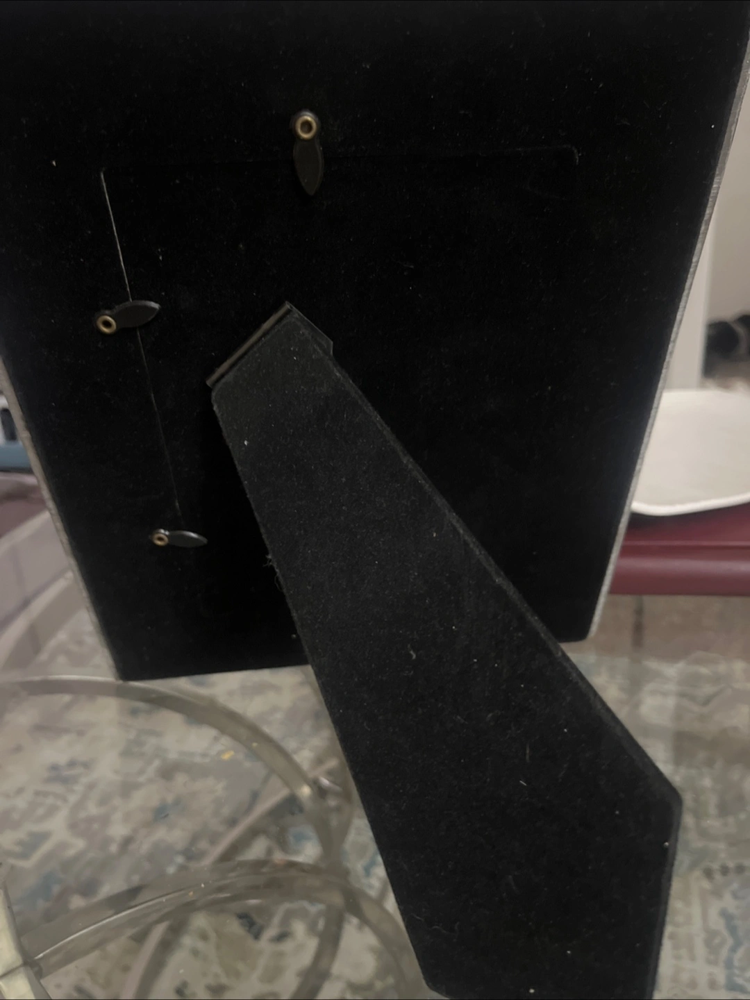 369Beautiful silver picture frame. Intricate detailing. Features a stand. Perfect for a cherished photo.