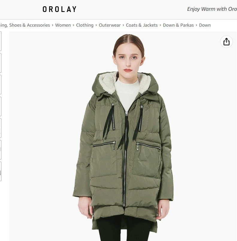 87Selling an Orolay Women's Thickened Down Jacket in size XS. It's a stylish and cozy option for staying warm during the colder months. The jacket features a unique design with multiple pockets and a plush lining. Worn twice. Fits somewhat large. I am 5'4" 125 lbs and there is some room. This is an extremely warm down coat. As warm as my high-end Mackage.