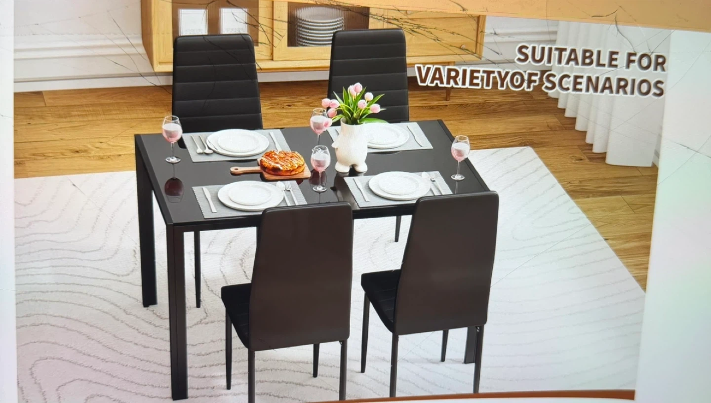 Black Dining Table Set with 4 Chairs