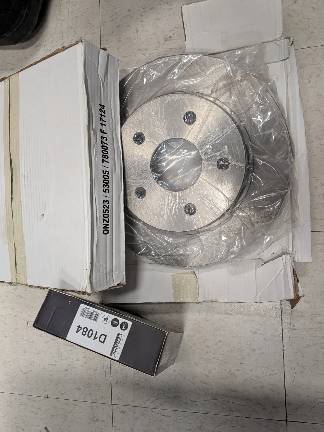 This set includes MAX brand carbon ceramic brake pads and rotors. The pads are designed for low noise and long life. Rotors are a standard metal construction. Original bought for 2017 Dodge Ram 1500