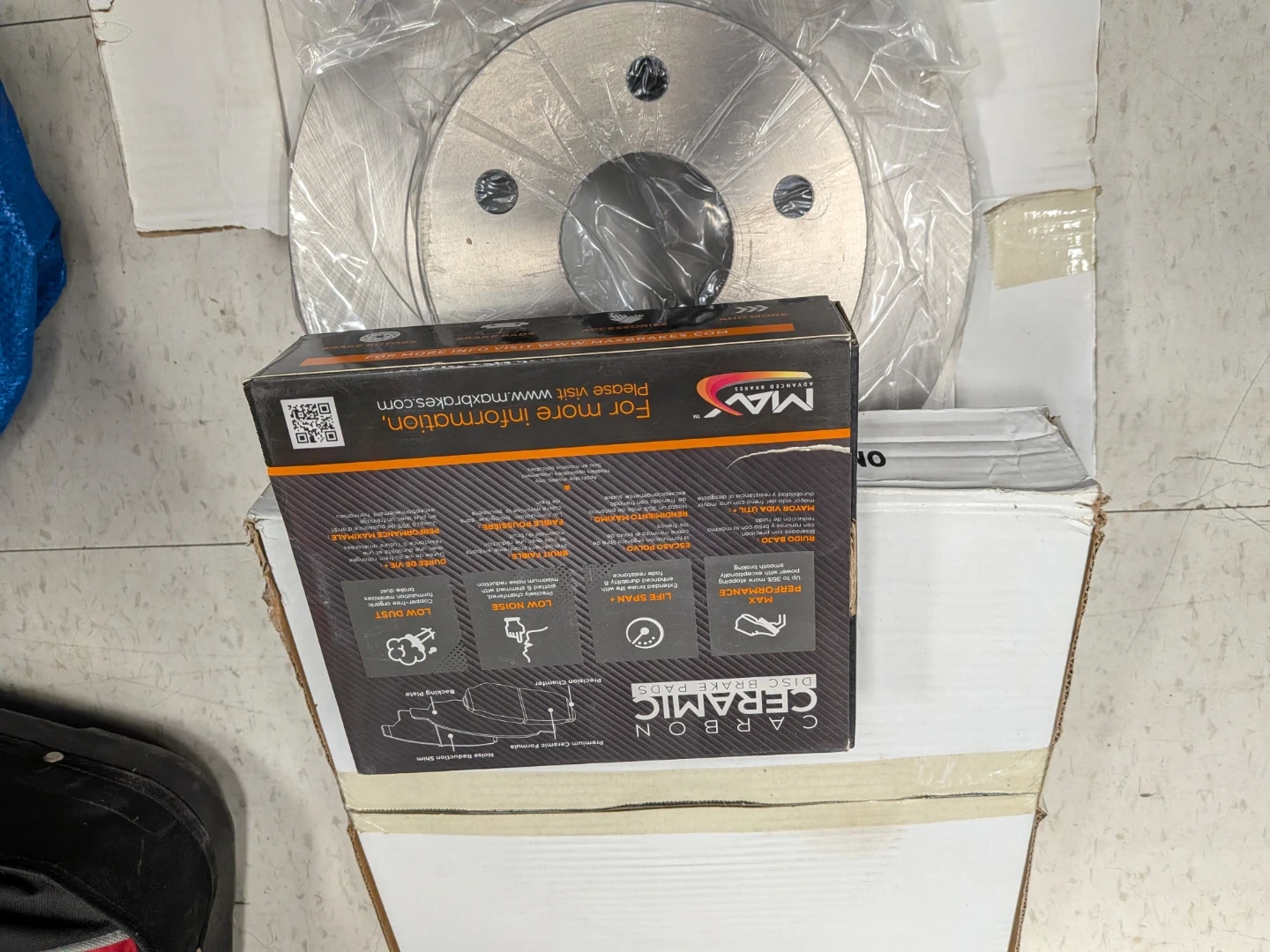 This set includes MAX brand carbon ceramic brake pads and rotors. The pads are designed for low noise and long life. Rotors are a standard metal construction. Original bought for 2017 Dodge Ram 1500