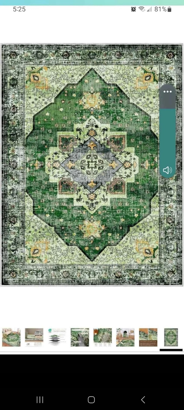 Gorgeous green rug, intricate design. Soft and comfortable underfoot. Perfect for living room or bedroom. Excellent condition. Machine washable.