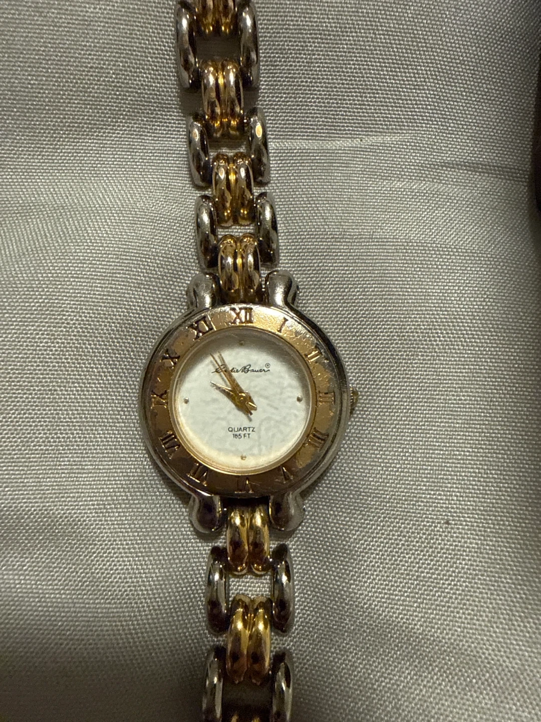 Selling a lovely Eddie Bauer ladies watch. It features a two-tone design (gold and silver) and comes with its original box! It's in great condition and would make a wonderful addition to any collection