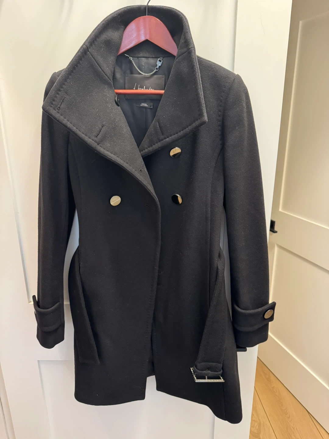 Aritzia Babaton peacoat made with virgin wool and cashmere. Double-breasted with an optional belted waist.