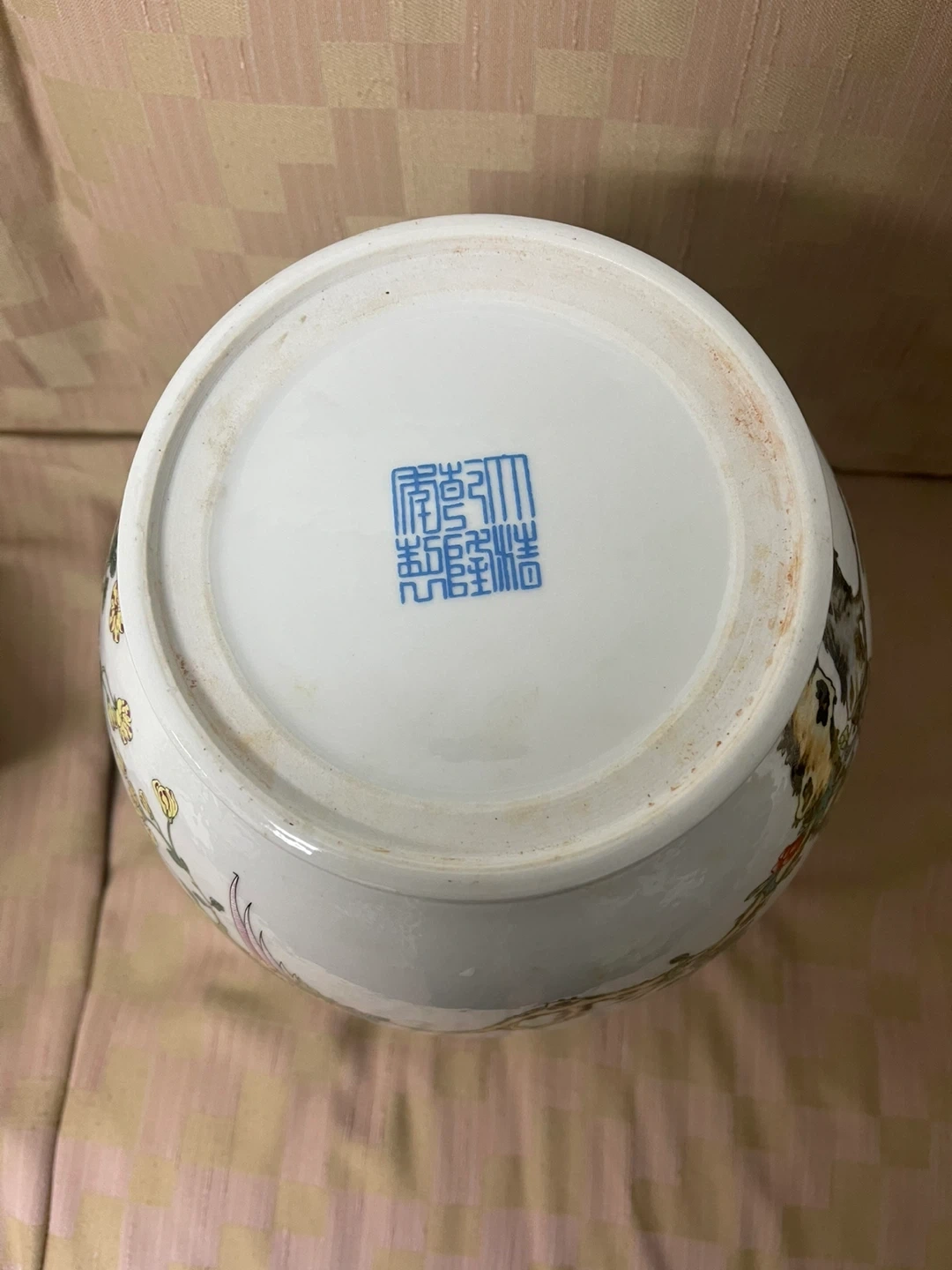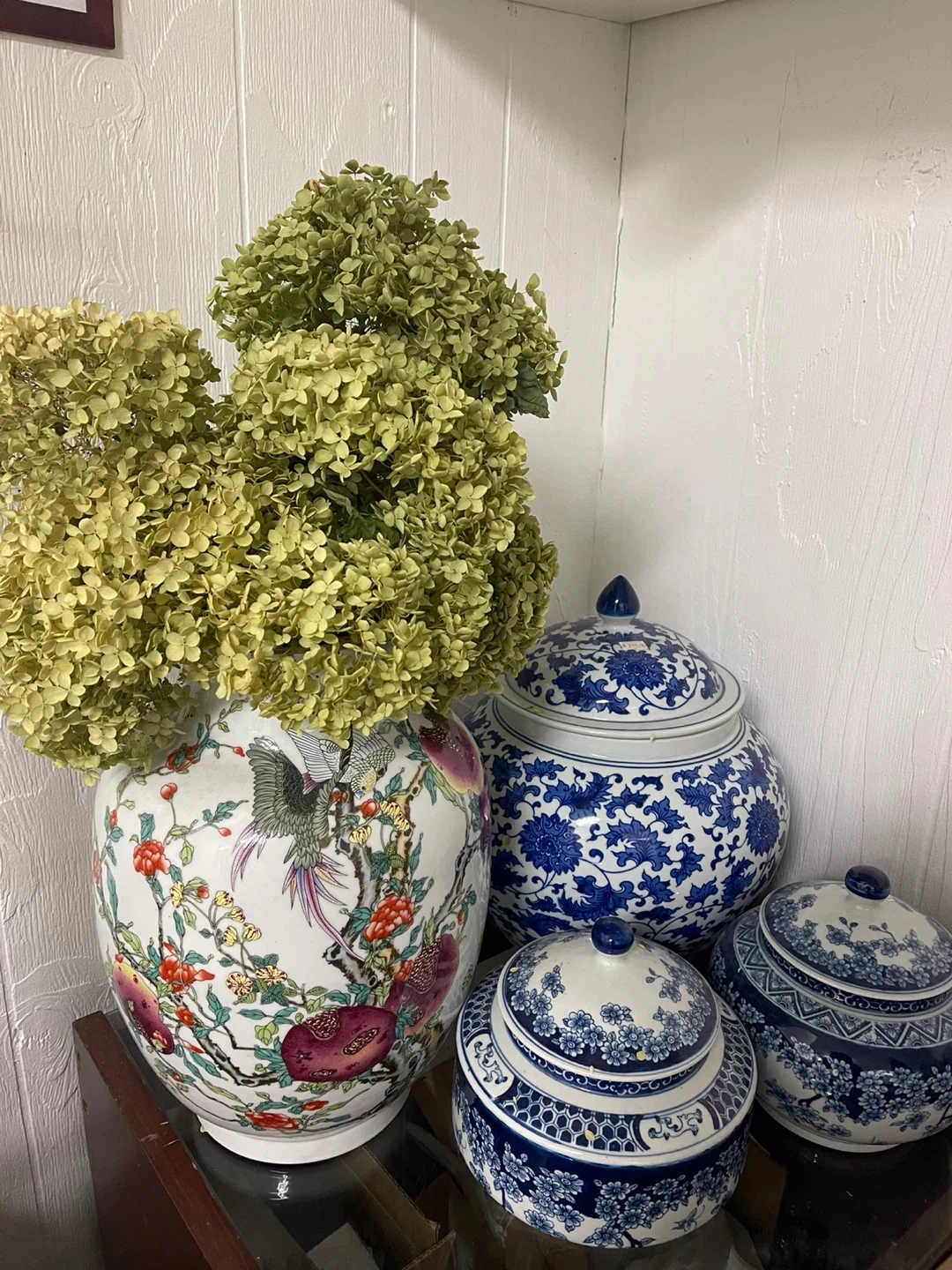 Made in china jing de Zheng . Decorative blue and white porcelain ginger jar with a lid. Height is 40 cm. A lovely piece for home decor!