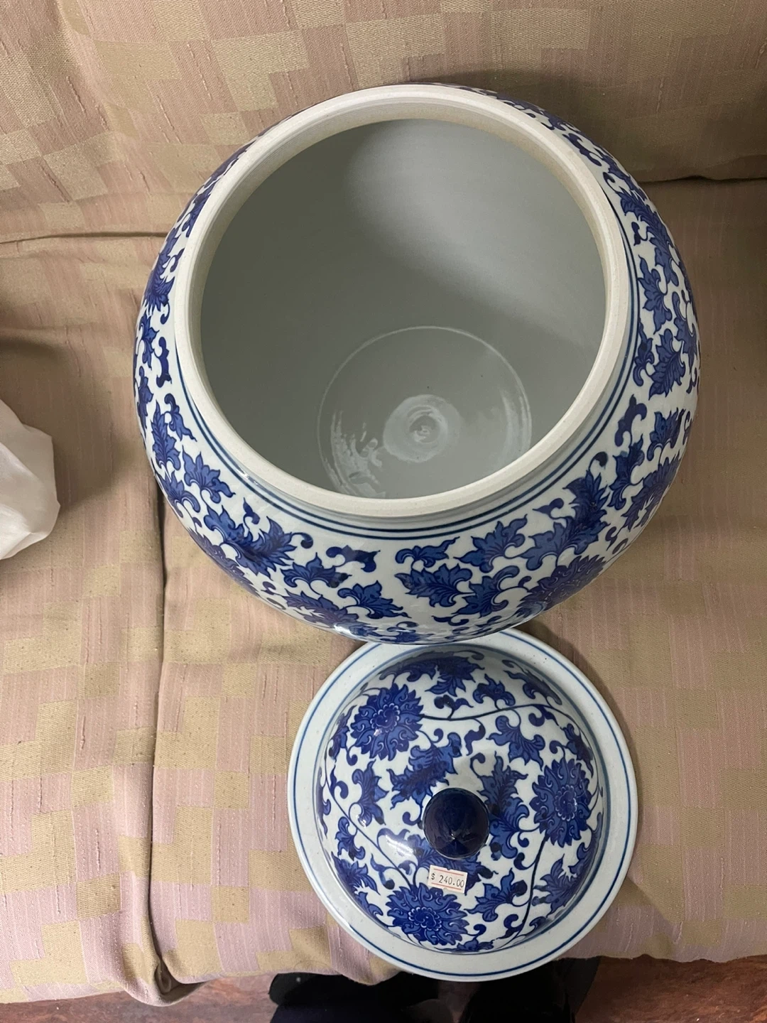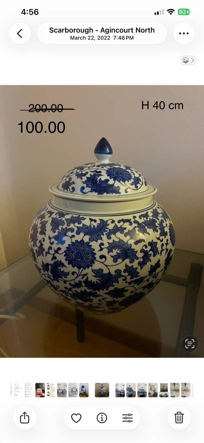 Made in china jing de Zheng . Decorative blue and white porcelain ginger jar with a lid. Height is 40 cm. A lovely piece for home decor!