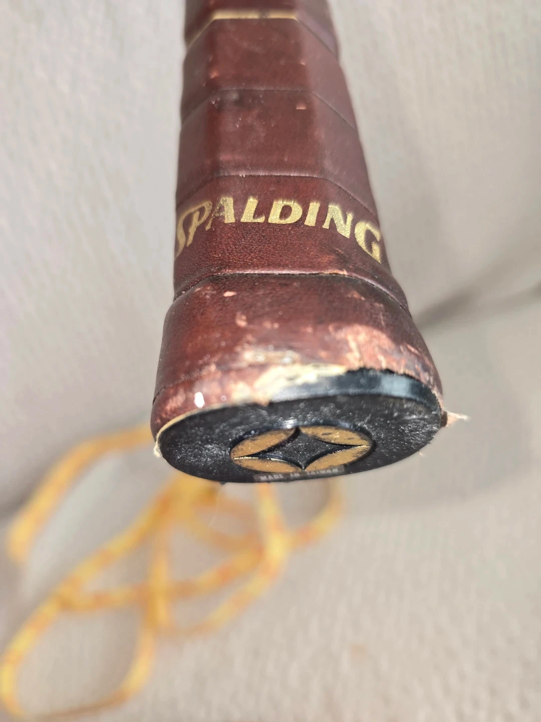 This is a Spalding System 2000 tennis racket with an oversized head. It's constructed from 20% aluminum alloy for superior control and optimum weight. The racket measures approximately 27 inches in length.