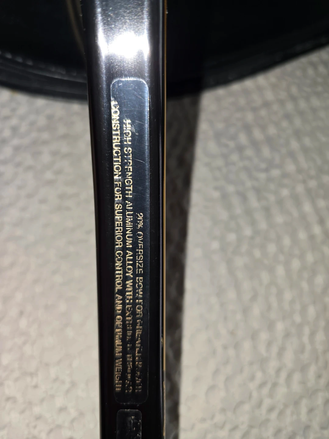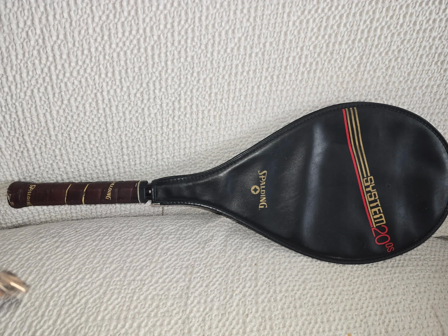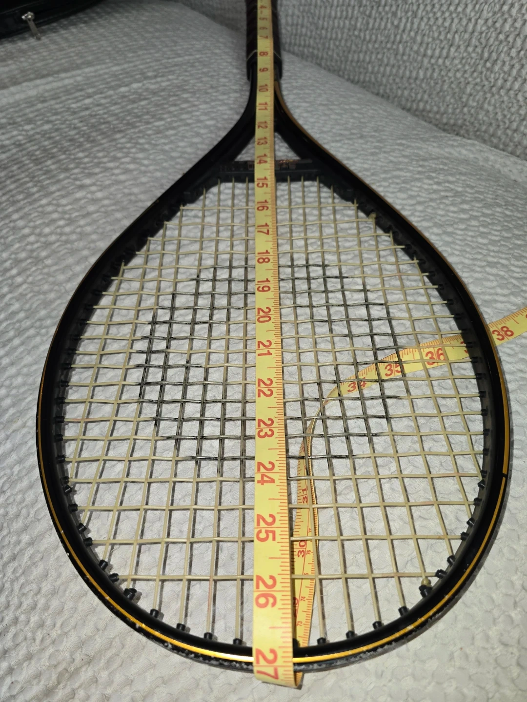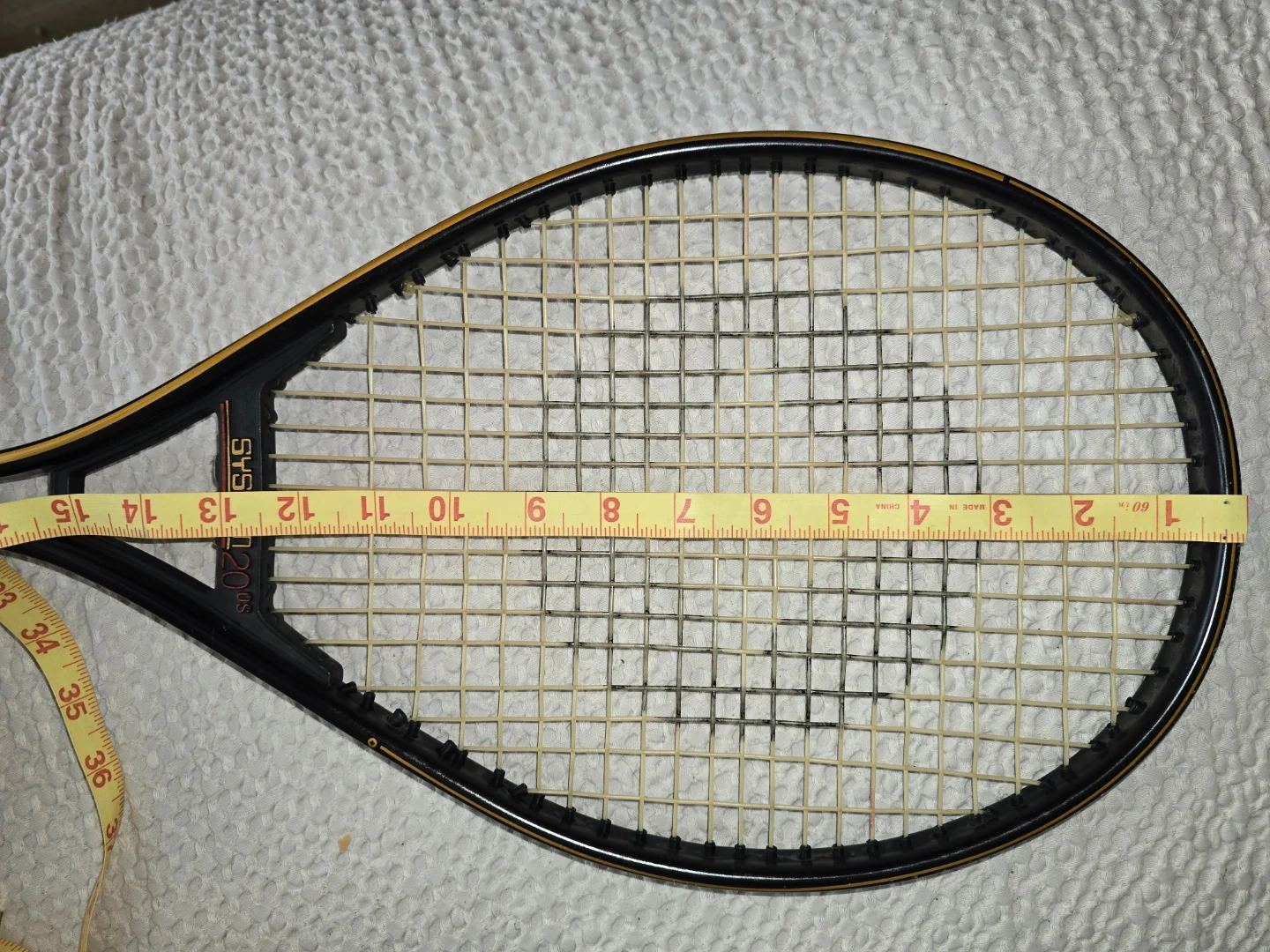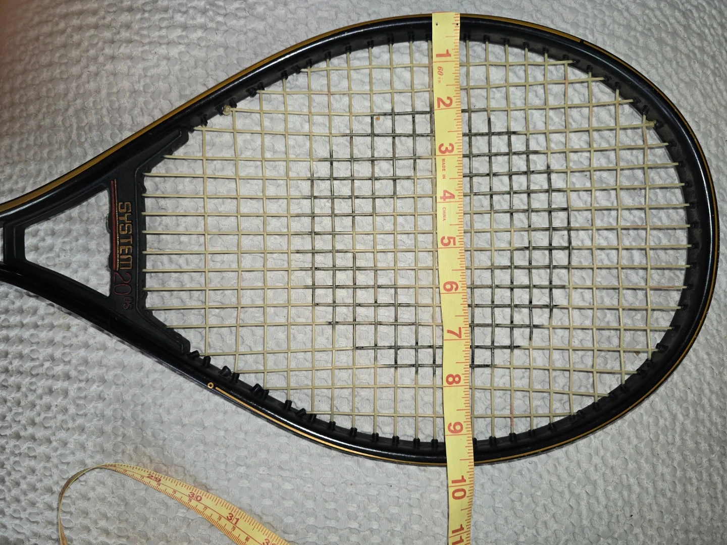 This is a Spalding System 2000 tennis racket with an oversized head. It's constructed from 20% aluminum alloy for superior control and optimum weight. The racket measures approximately 27 inches in length.