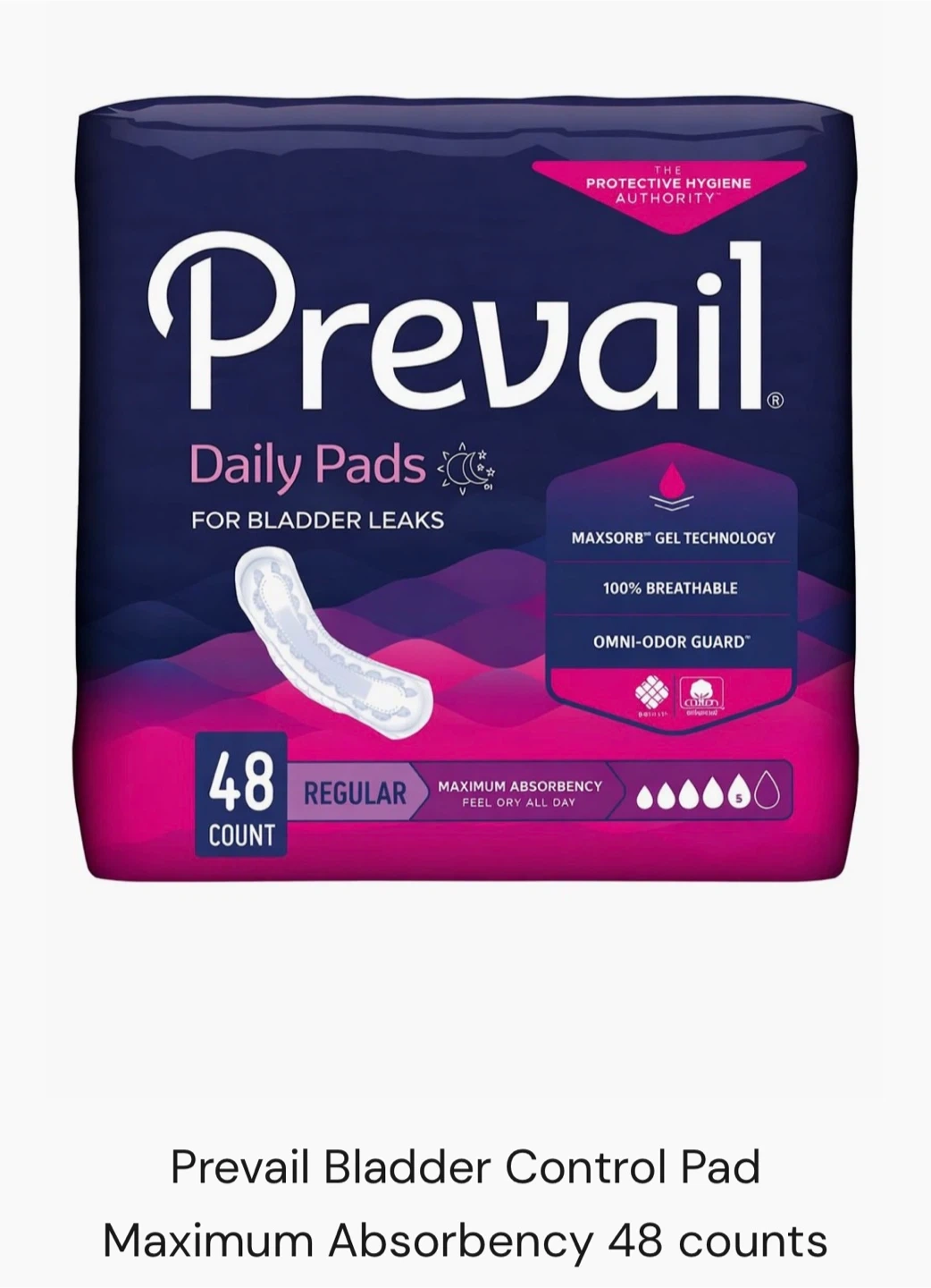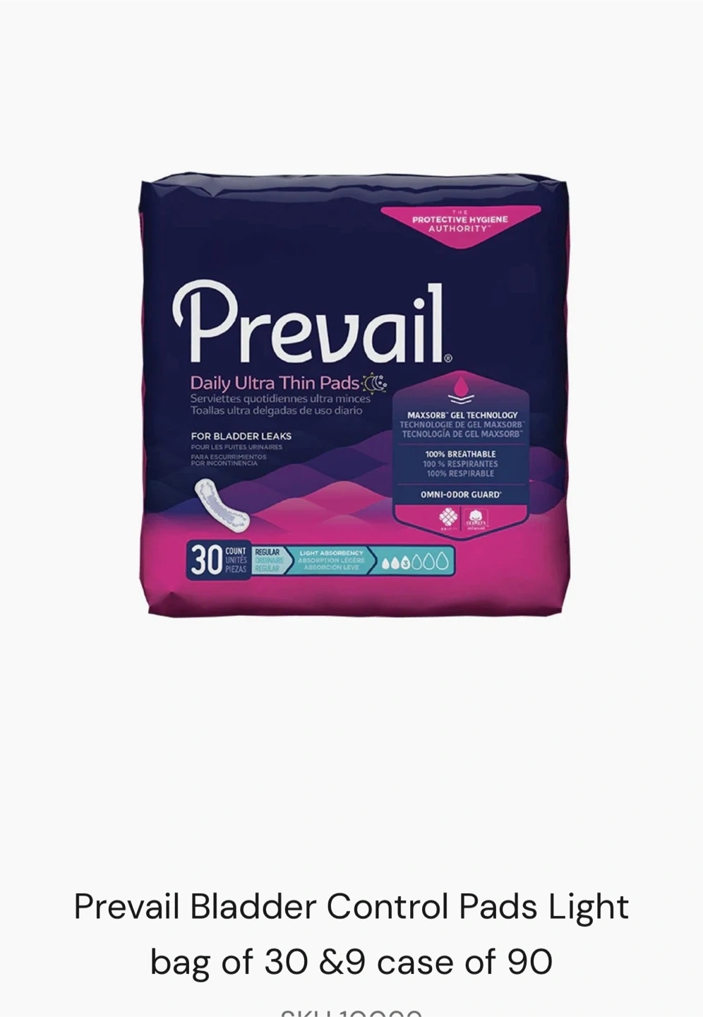 These Prevail Daily Pads offer maximum absorbency for bladder leaks. They feature MaxSorb gel technology for leakage protection. Omni-Odor Guard helps prevent odour. These are 100% breathable pads.