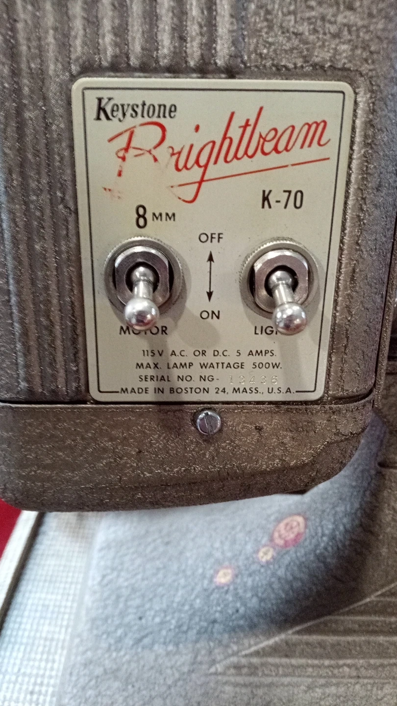 This is a vintage Keystone Brightbeam K-70 8mm film projector. It's made in the U.S.A. and includes its original case. Comes with power cord attached. The unit has switches for motor and light.