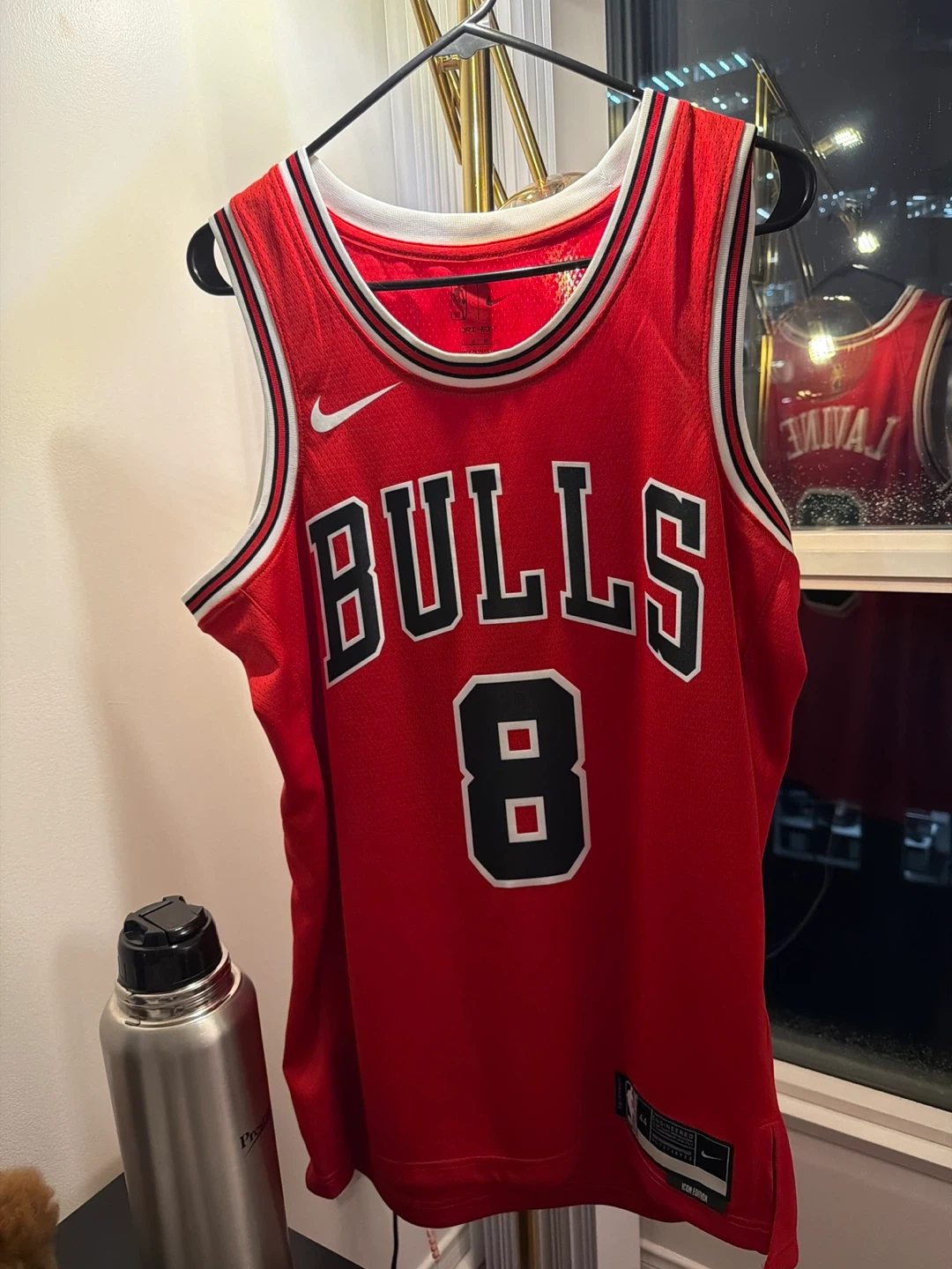 Nike Dri-FIT NBA Chicago Bulls Icon Edition jersey. Features Zach Lavine's name and number 8. Size 44, made in Thailand. Engineered to exact specifications of championship athletes.