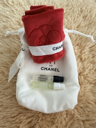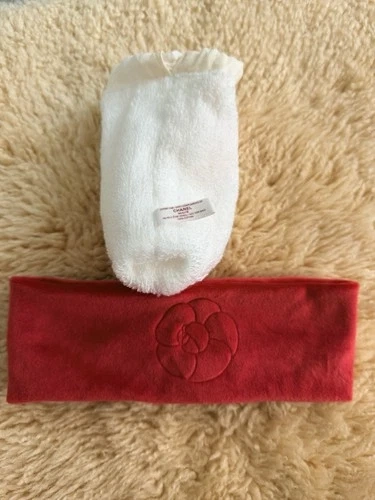 Cute and nice Chanel headband in Chanel cloth bag. Red velvet and super soft! Come with two Chanel perfume samples for free.
