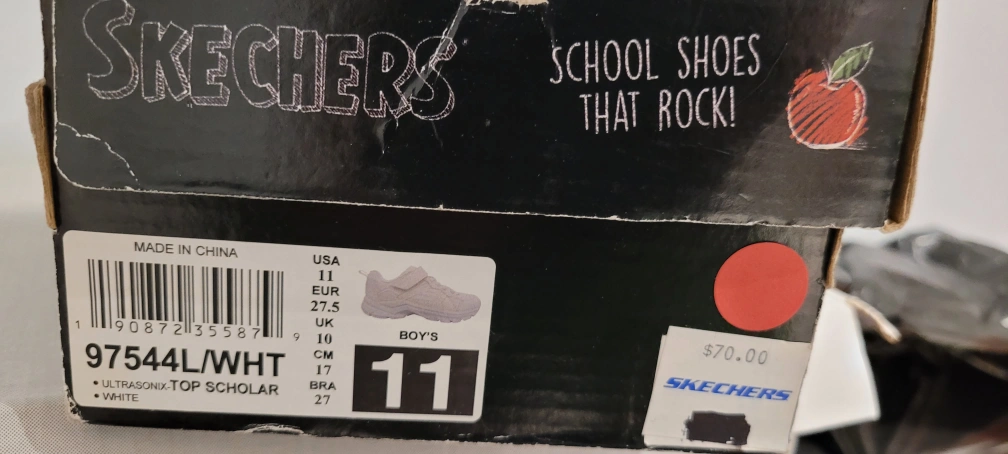 Selling a pair of Skechers running shoes in white, size 11 (US). They're new in box !