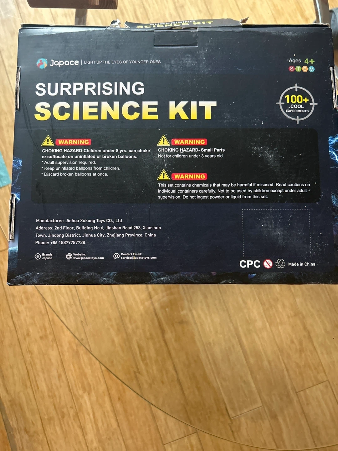 This Japace Surprising Science Kit comes with over 100 cool experiments. It's designed for ages 4 and up. A variety of experiment components are included for young scientists! Parent supervision required