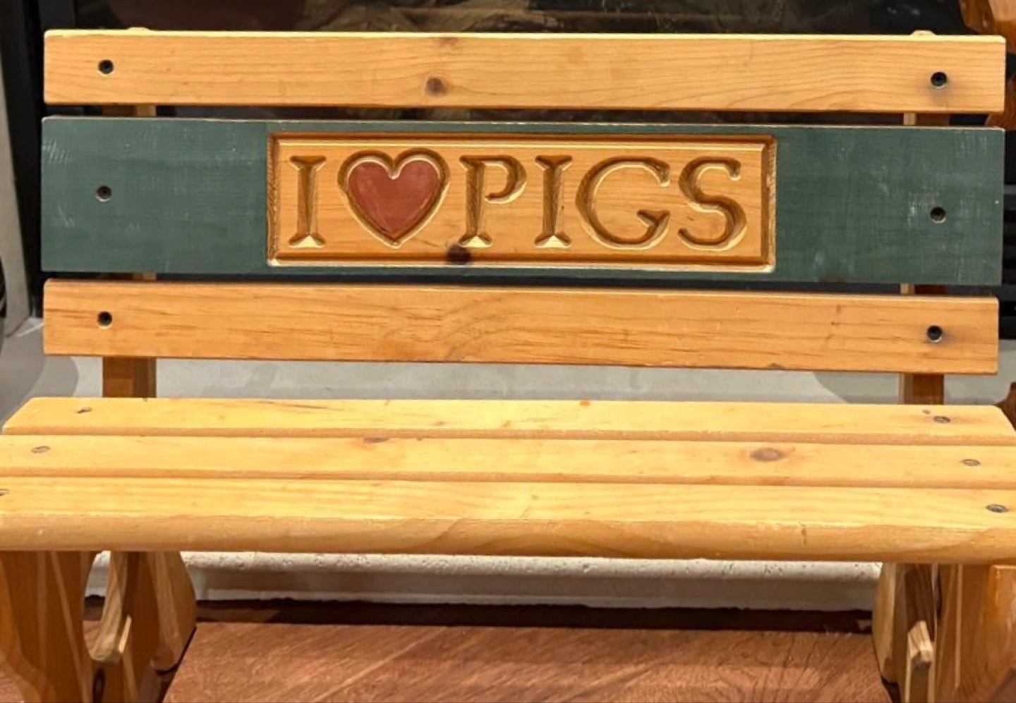 Selling a children’s wooden bench with a cute design that says "I ❤️ PIGS"! It's a unique piece, perfect for adding a touch of whimsy to your home or garden. The bench is sturdy and well-made, with a natural wood finish. It's in great condition and ready for a new home!