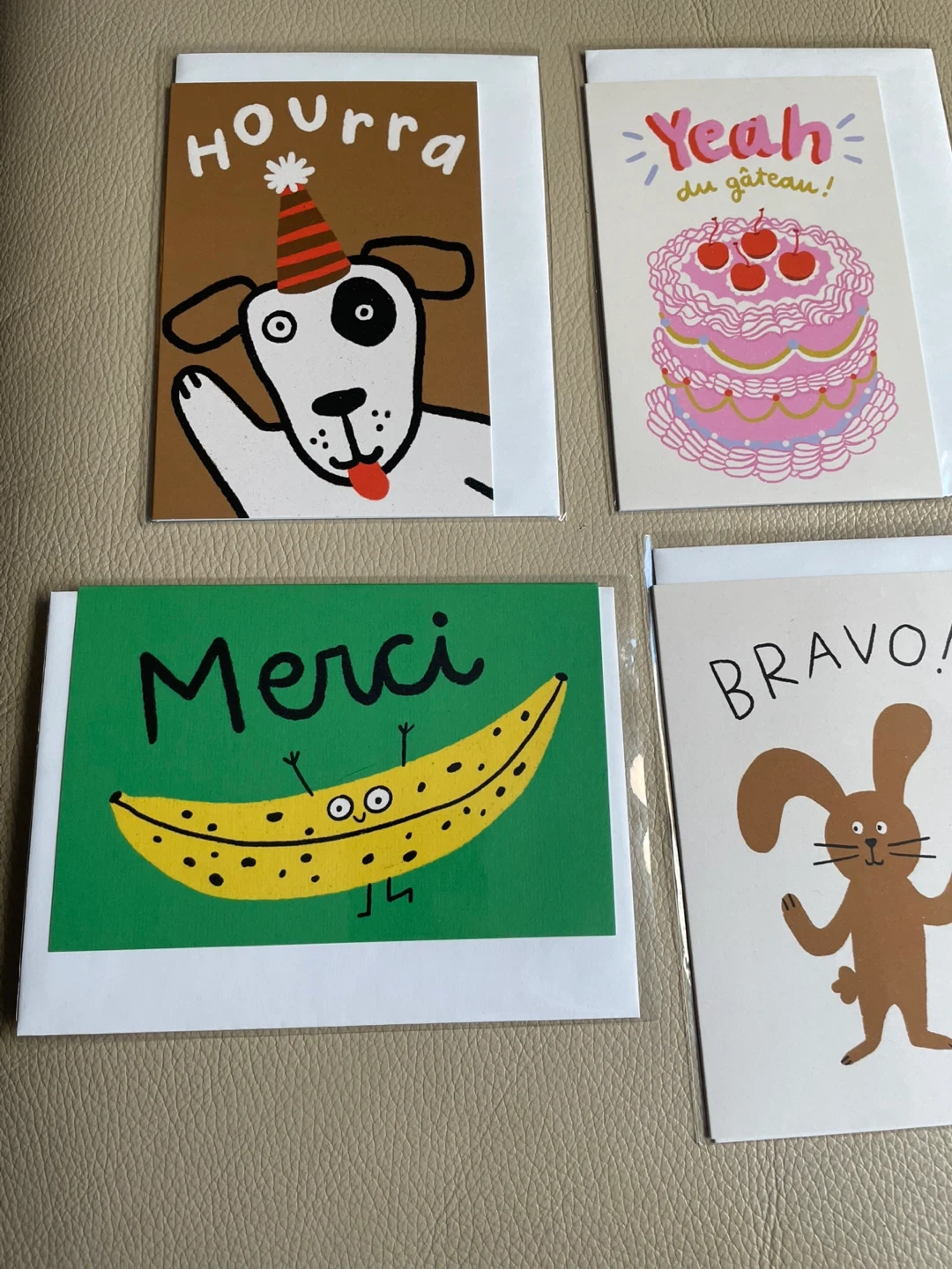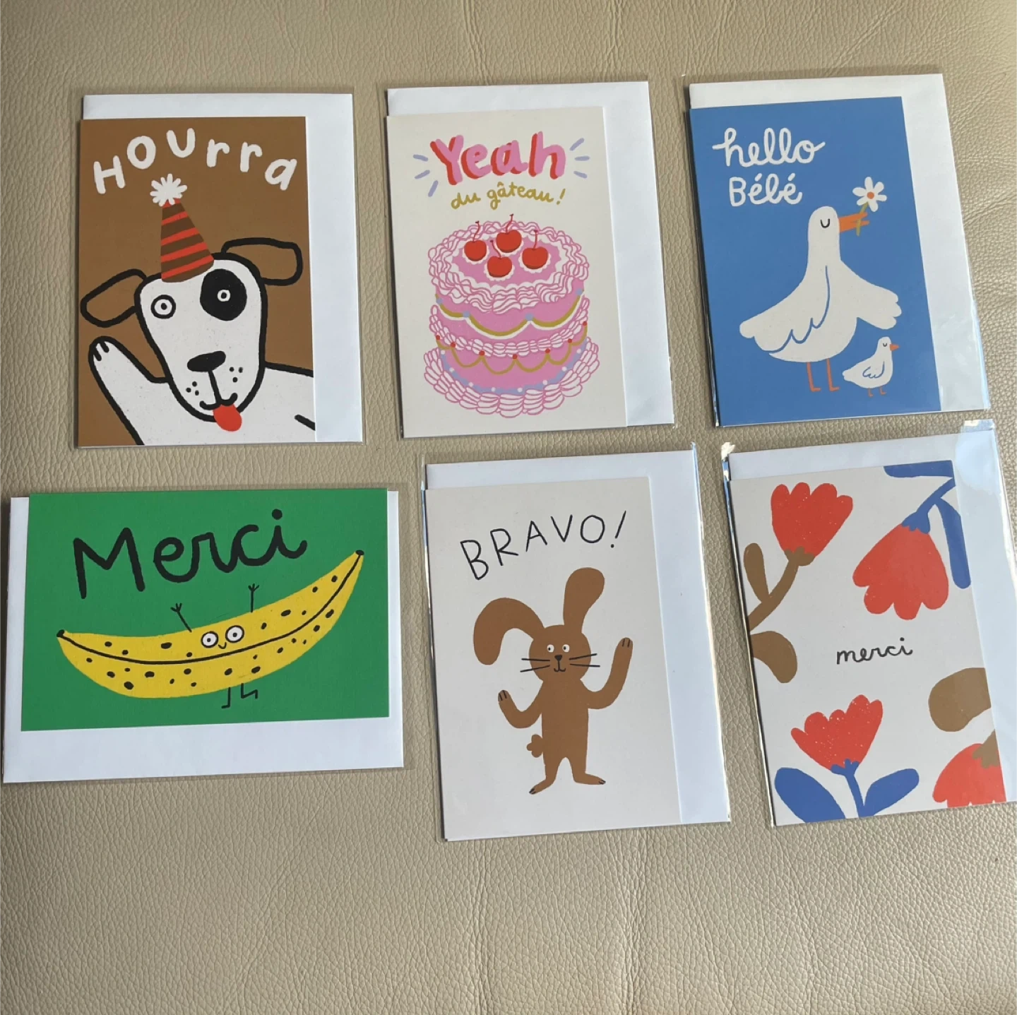 This set includes six fun and quirky French greeting cards. They're perfect for various occasions!