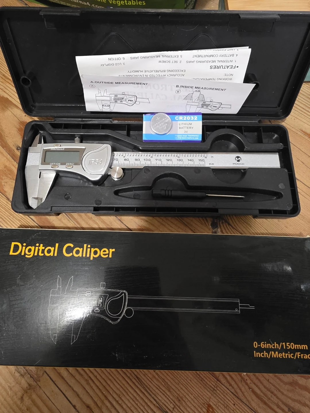 This is a digital caliper, measuring 0-6 inches or 150mm. It includes a CR2032 lithium battery. It's designed for precise measurements in both inch and metric formats.