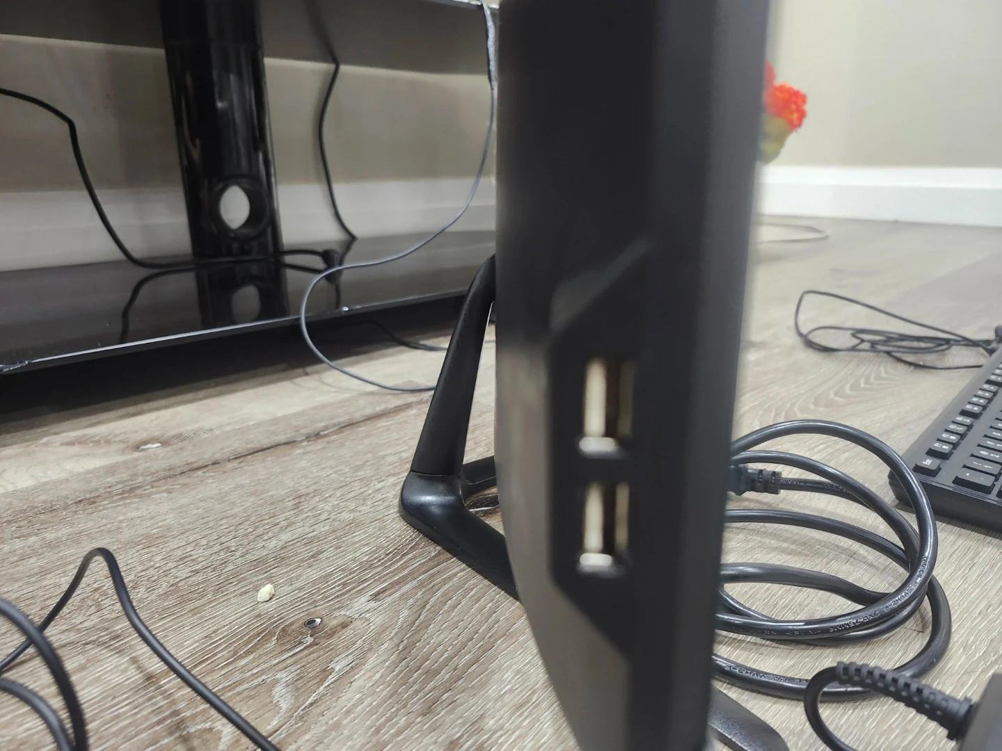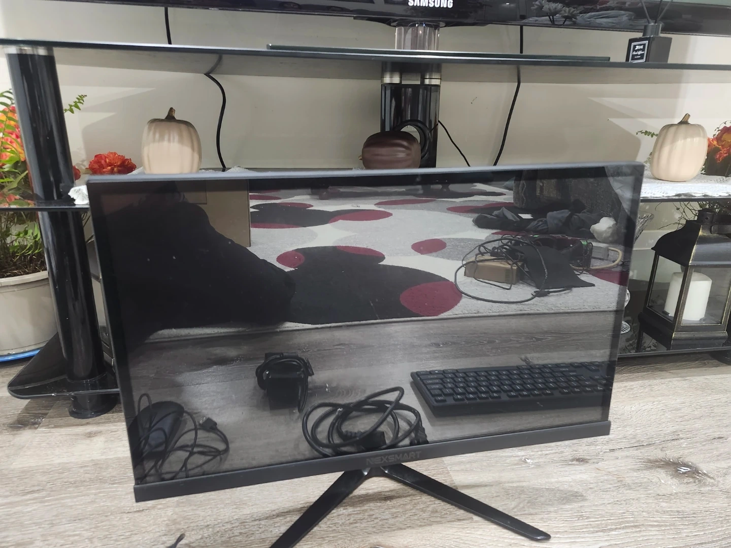 This is a NexiSmart monitor set. It includes the monitor, a keyboard, and a mouse. The monitor has USB ports on the side.