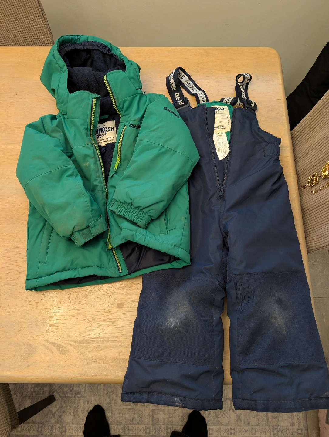 12Selling a gently used OshKosh B'Gosh winter snowsuit set! The set includes a green hooded jacket and navy blue snow pants with adjustable suspenders. Perfect for keeping your little one warm and dry during the winter months. Ready for more snowy adventures!