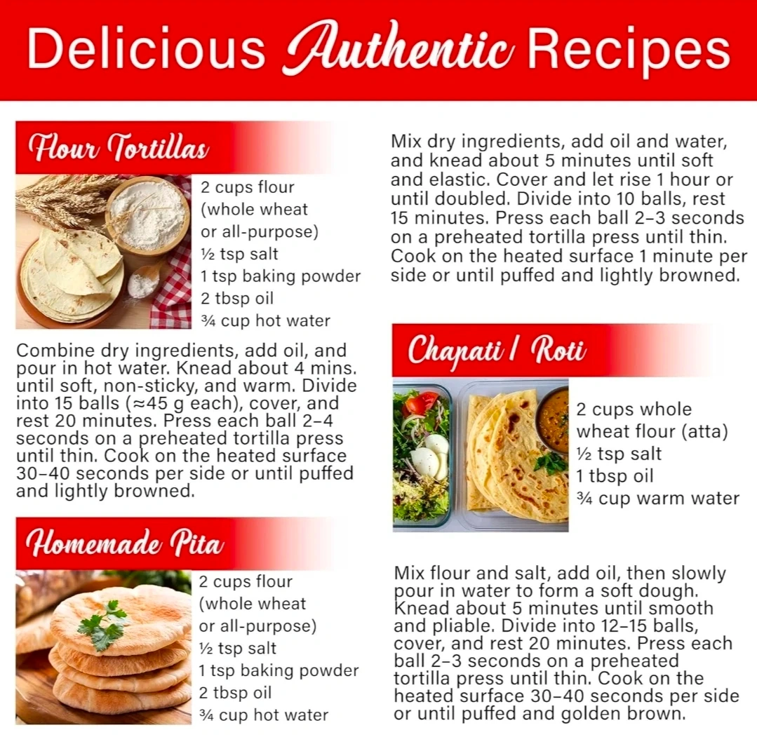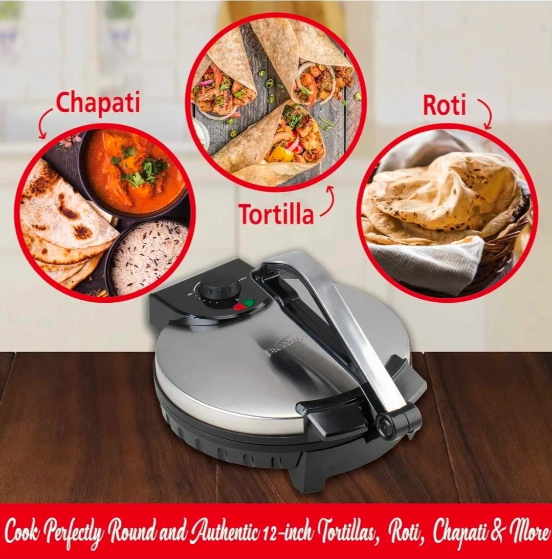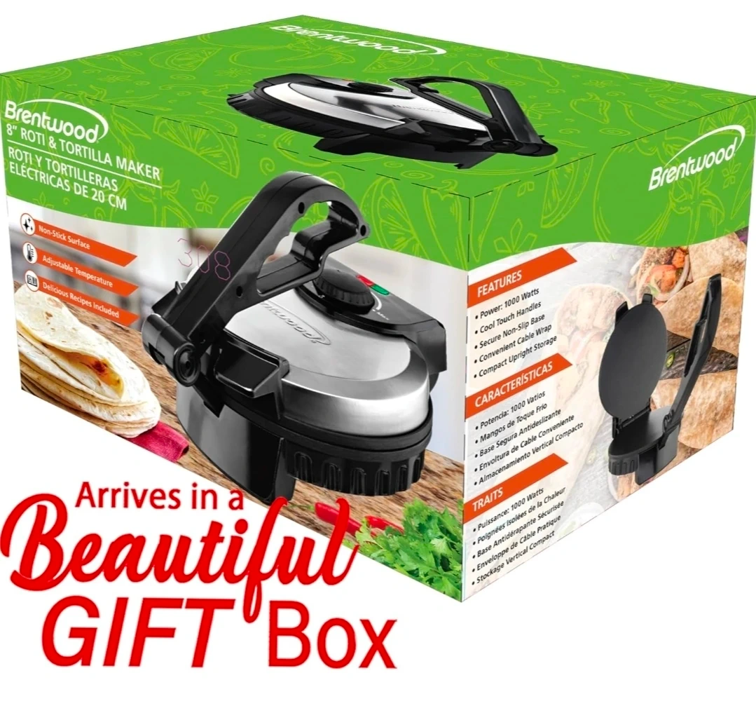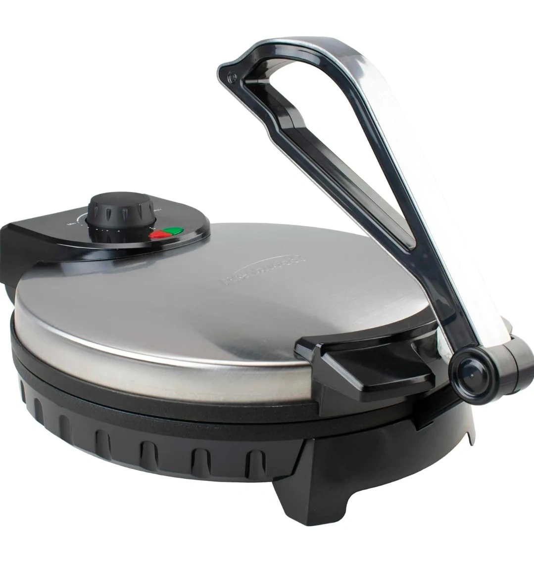 This electric tortilla maker cooks perfectly round and authentic tortillas, chapati, and roti. It features a non-stick surface and adjustable temperature for best results. Delicious recipes are also included to get you started!