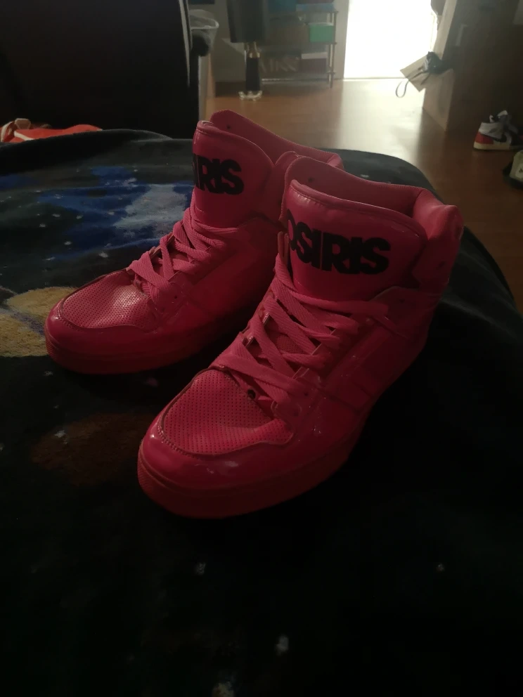 17These are a pair of bright pink Osiris high-top sneakers! They're in great shape and ready for a new home