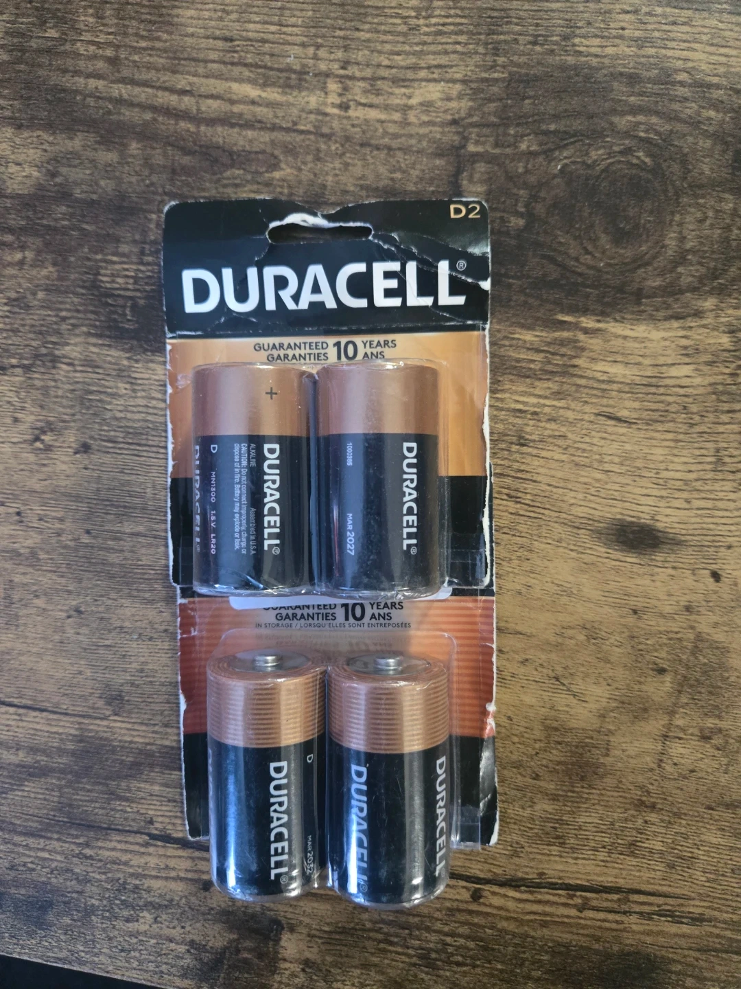Duracell D size batteries, 2 packs of 2 each (4 total). New, never opened.