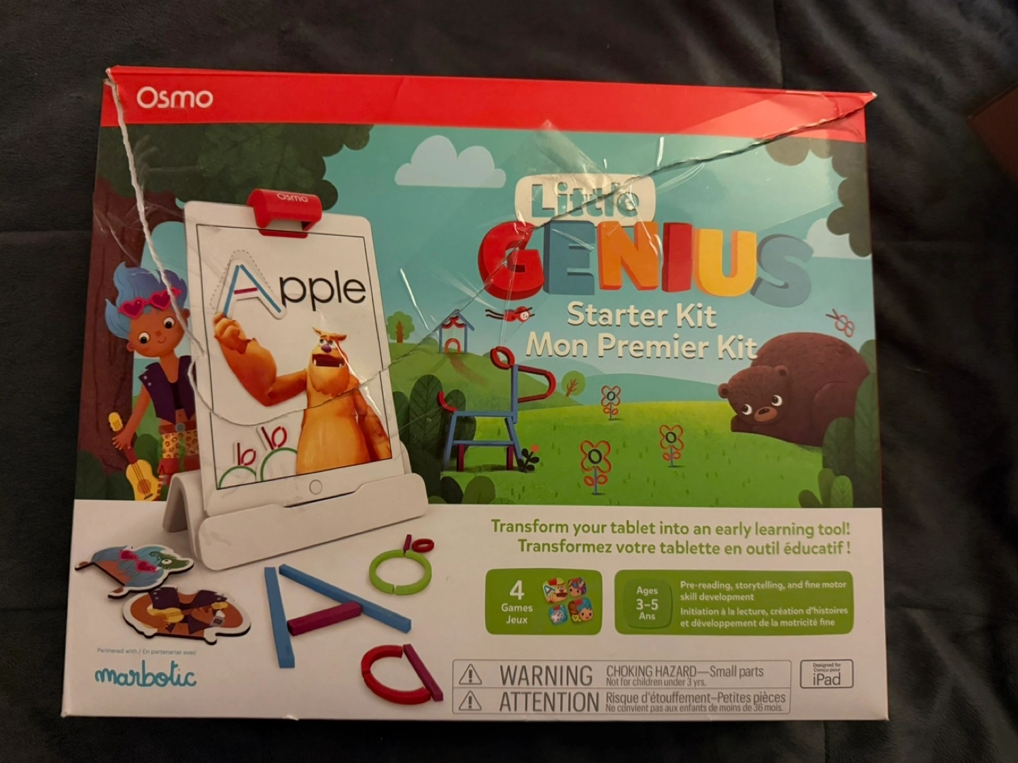 Osmo Little Genius Starter Kit for iPad. Box has a rip in it, does not affect use.