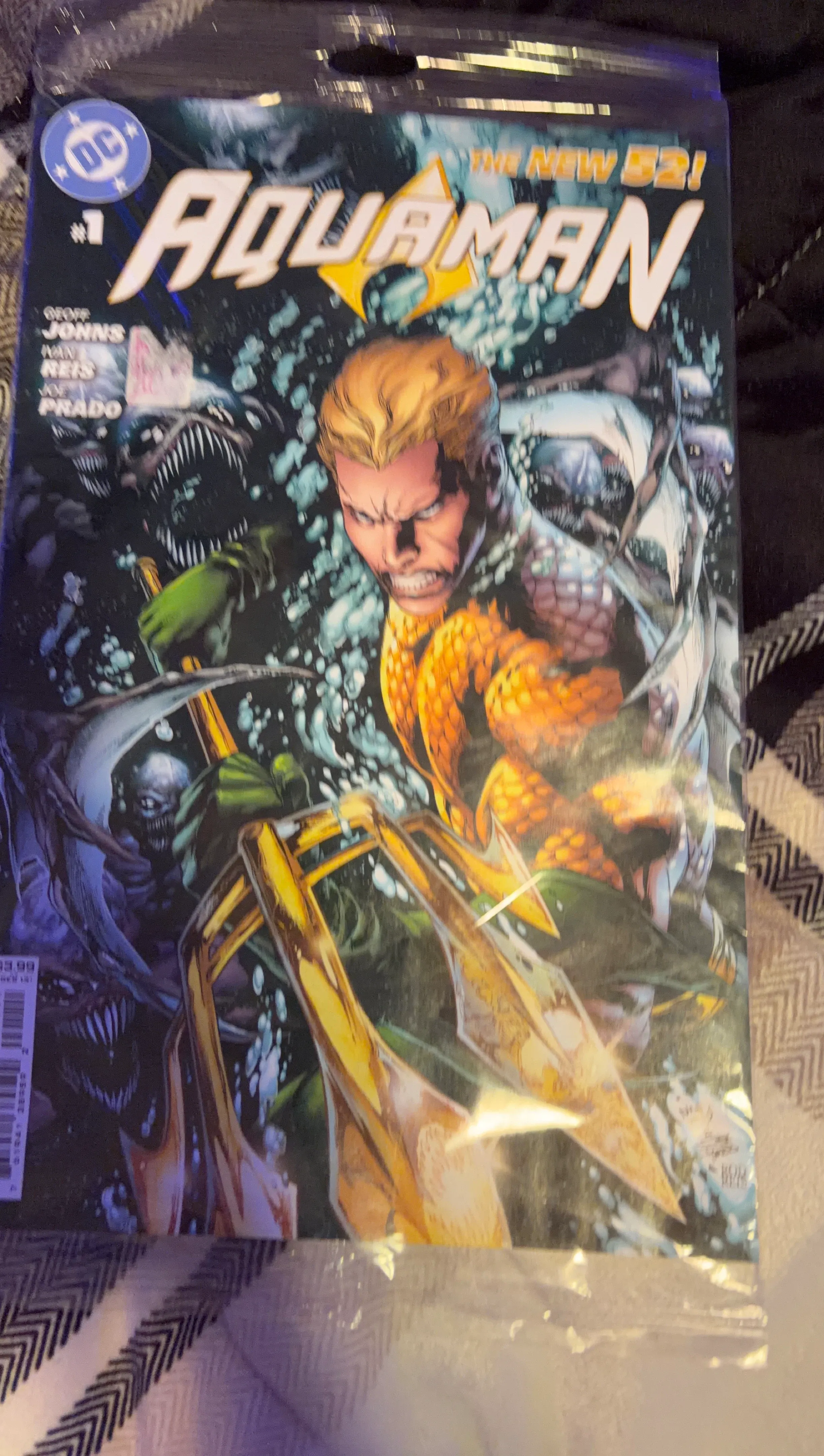 Aquaman The New 52! comic book, issue number 1. Written by Geoff Johns, with art by Ivan Reis and Joe Prado. It's a great addition for any DC Comics collector!